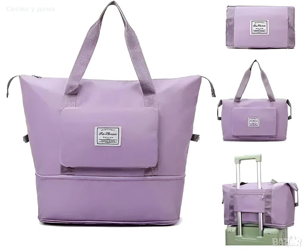 Чанта с уголемяващо се дъно с цип - 100% непромокаема материя/ Цвят: Черен няма преден джоб, сив, лилава с джоб / Виж асети!