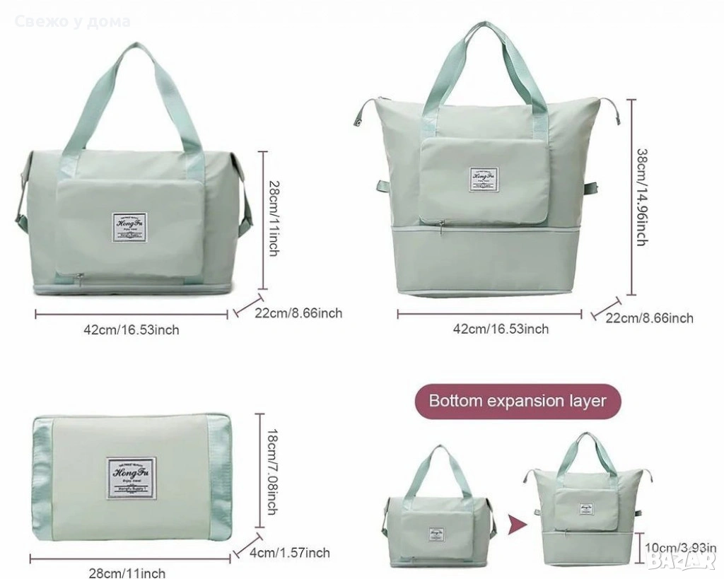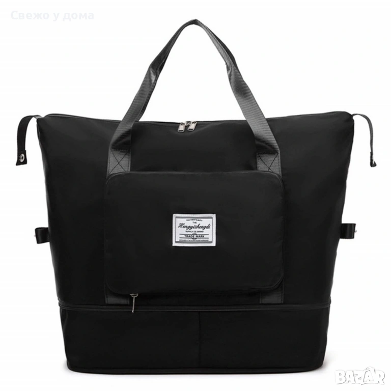 Чанта с уголемяващо се дъно с цип - 100% непромокаема материя/ Цвят: Черен няма преден джоб, сив, ли → Обява 53461566