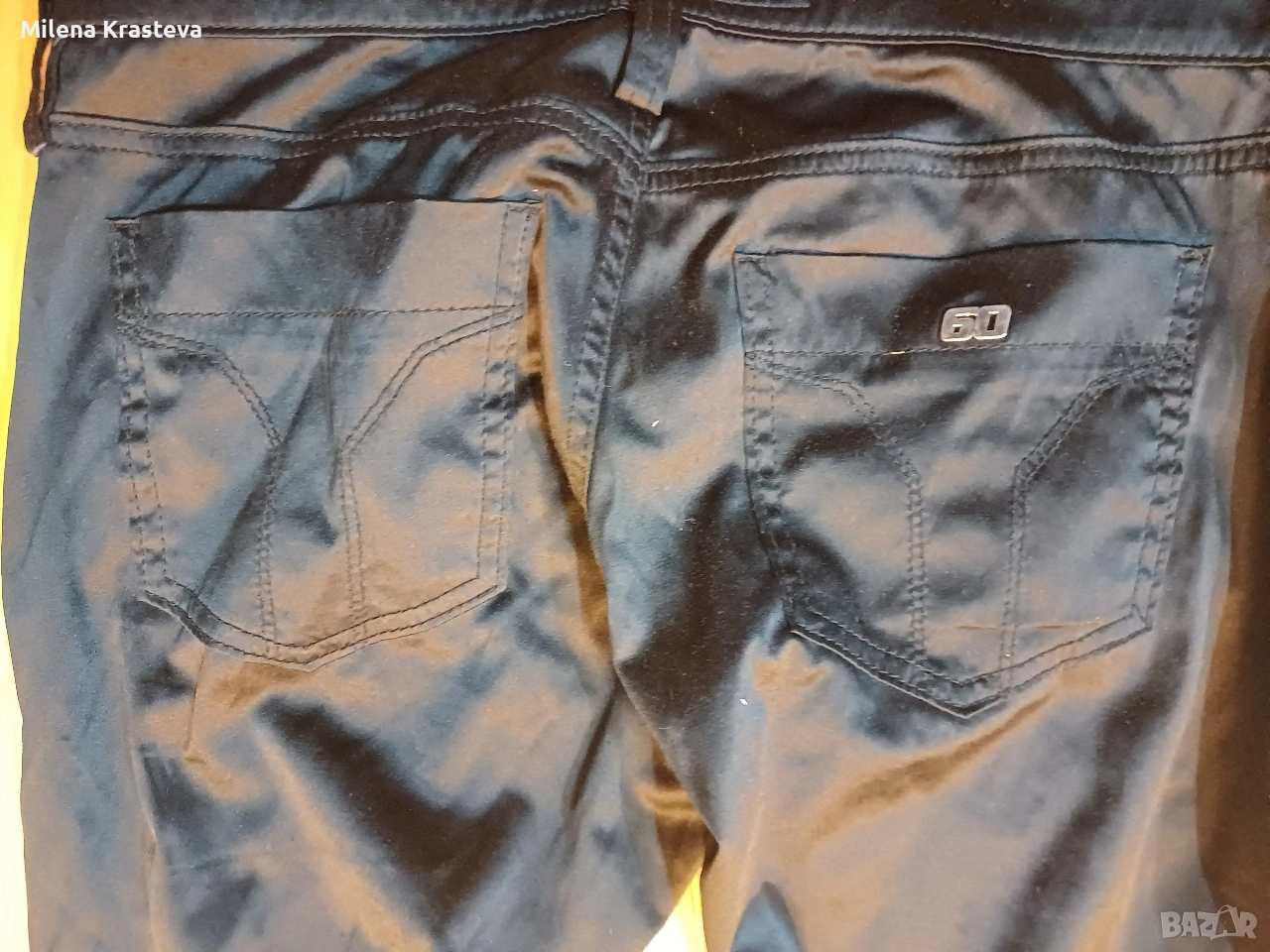 Пантолон. Интересно конструктивно решение на дизайнера относно конструкцията. В предната част платката е с по тясна визия, така се създава илюзия за издълженост на фигурата.
