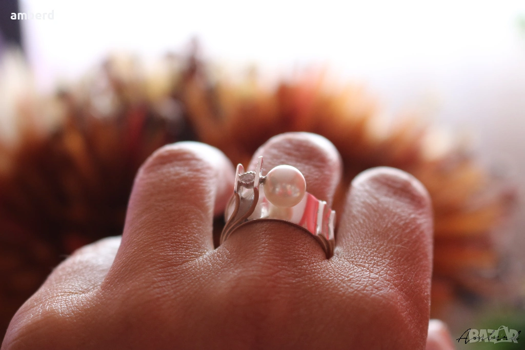 925 и култивирана перла. Вътрешен диаметър 18.5мм. Тегло - 8.40гр. Идеален подарък за