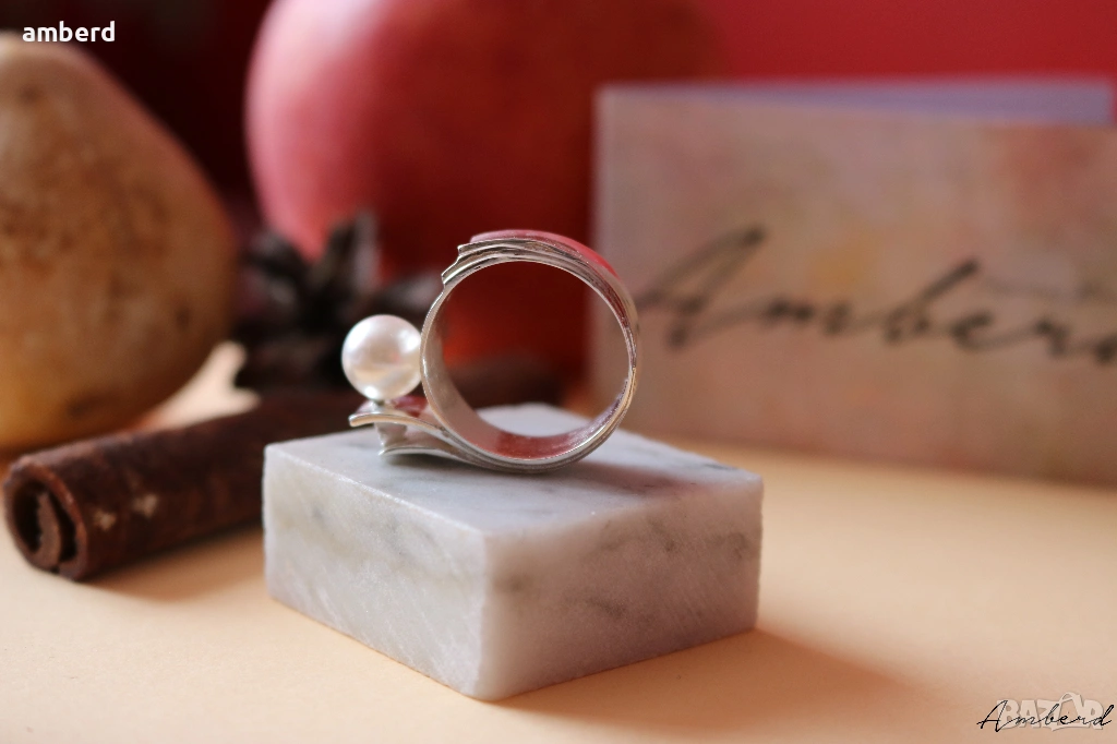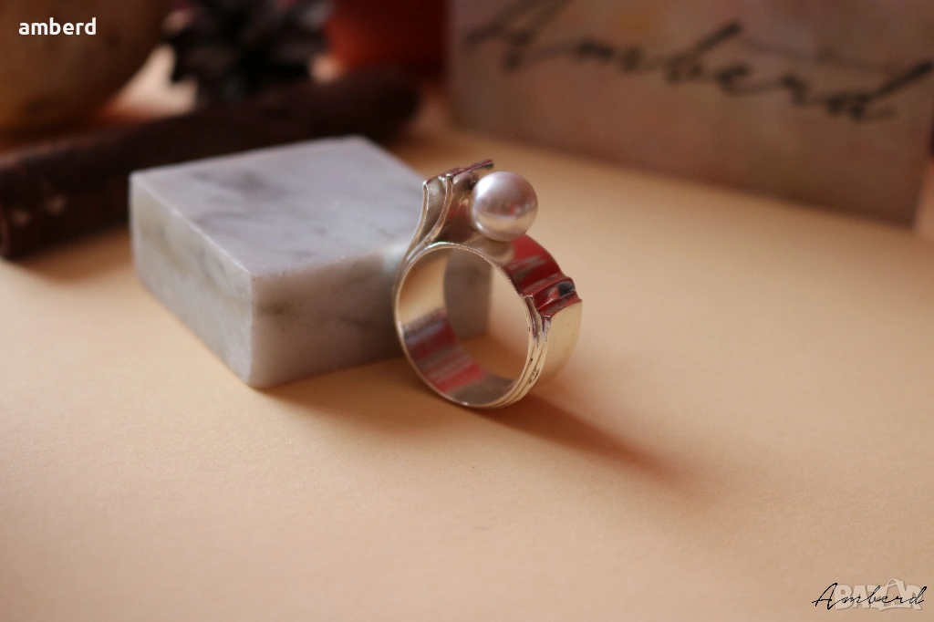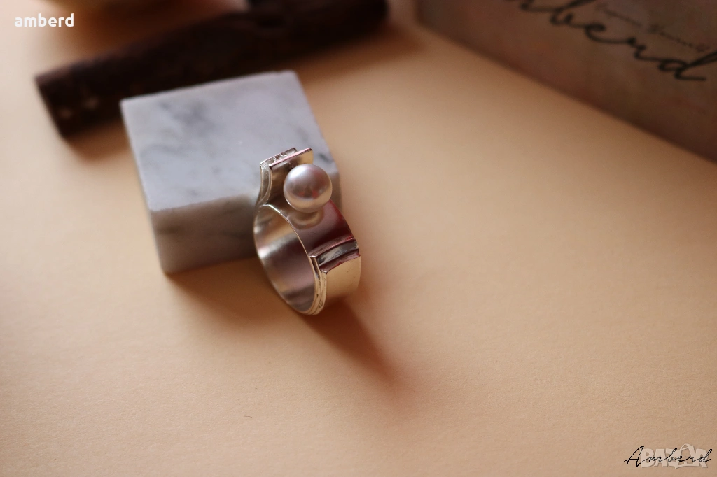 Стилен и елегантен сребърен пръстен с перла - модел R017А