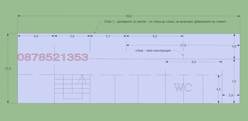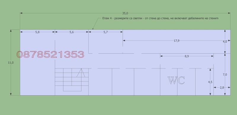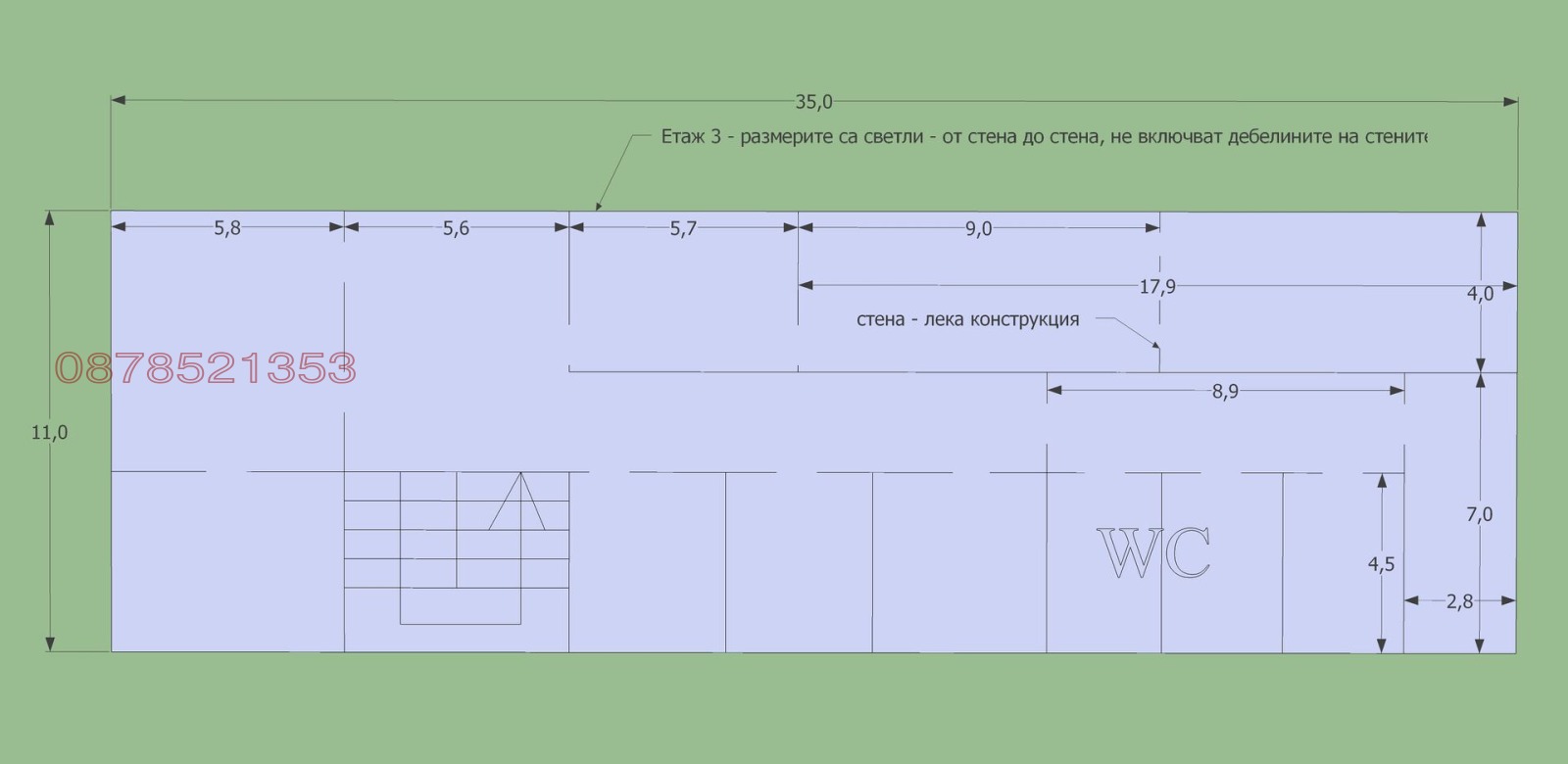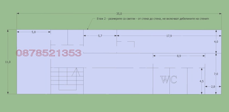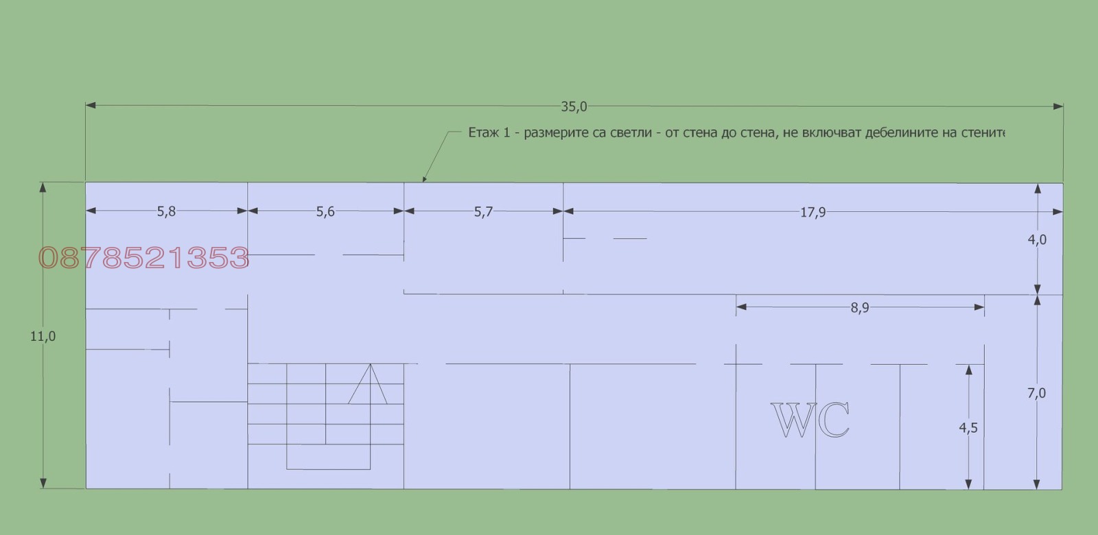 Всяко търговско помещение на 1ви етаж си има склад и тоалет. Разпределението на помещенията се вижда от скицата. Площа означена на скицата е: търговската площ+склада.