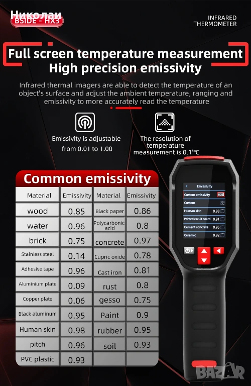Емисионна способност: 0.01~1