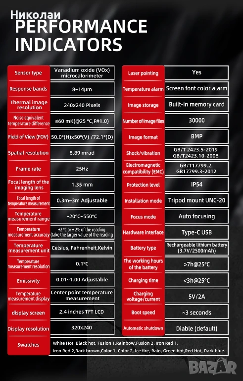 Резолюция на термоизображението: 240 * 240Px.