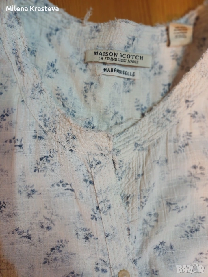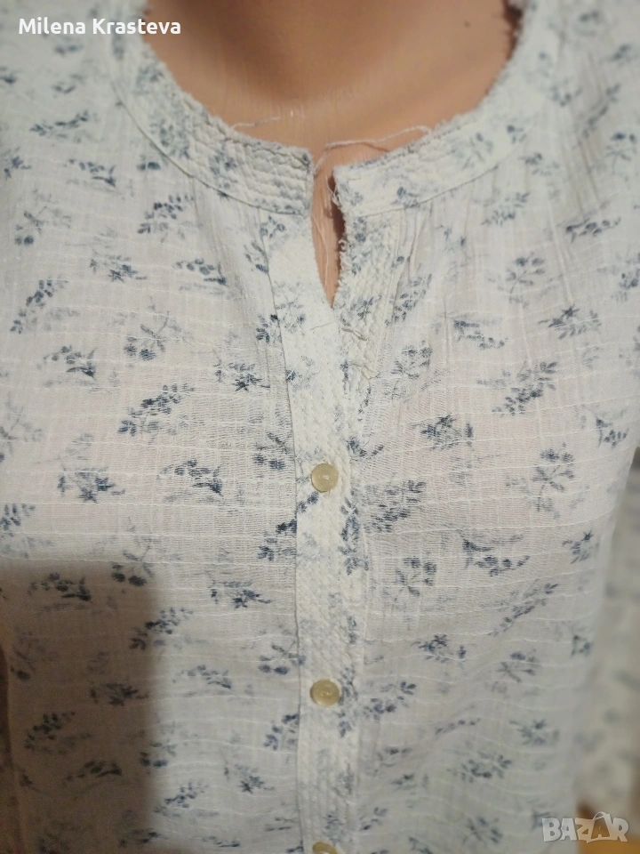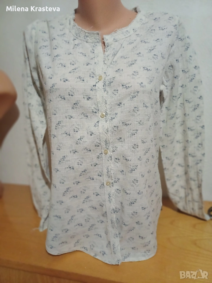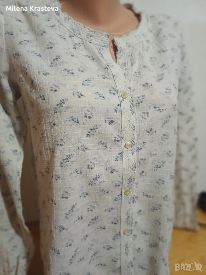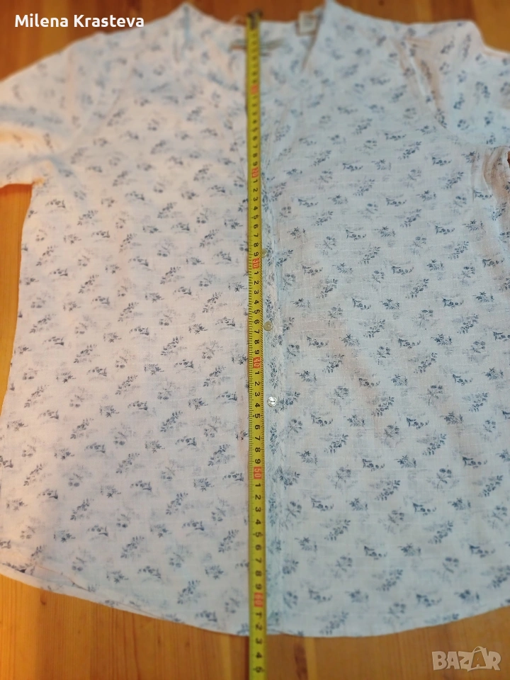 Произведена в Индия.100% памук. В задната част е наличен един набор под платката. На ръкавите са налични копчето в края. За да избегнат ярък принт платът е шит с яркия си цвят отвътре. Постигнато е едно туширане на цветовете и придаване на мек характир на ризата.