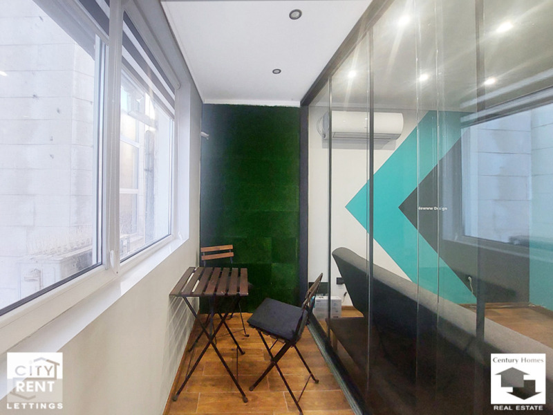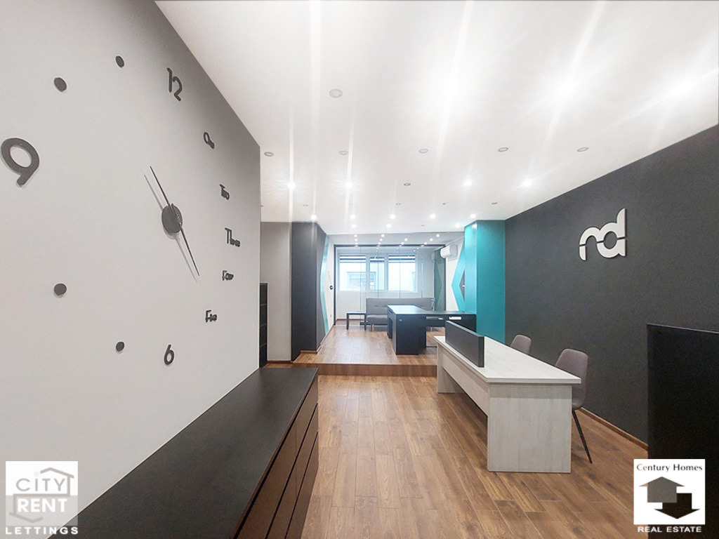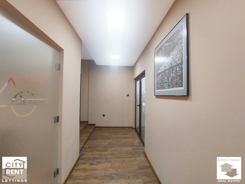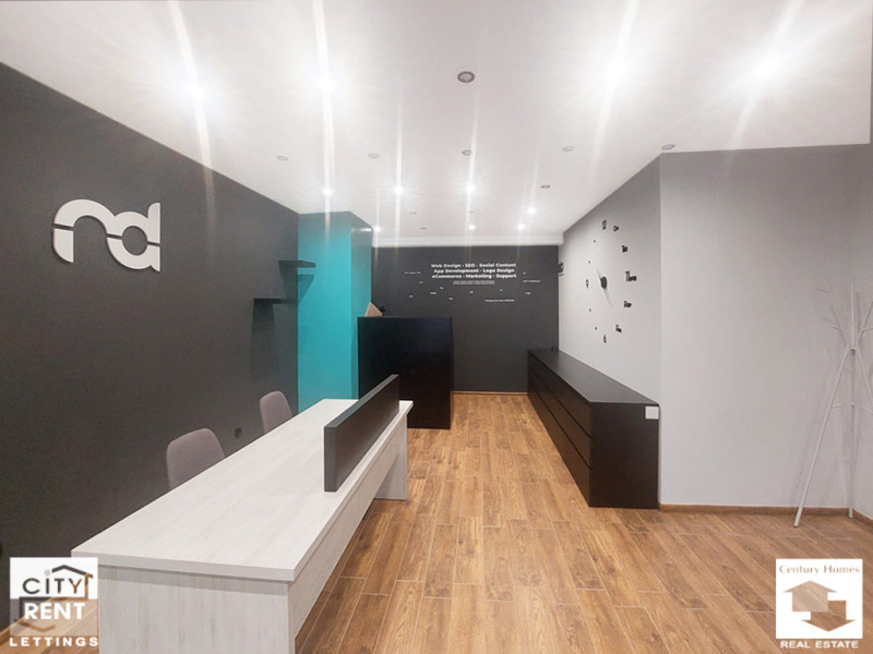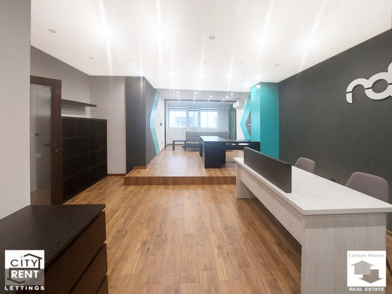 Офисът е с площ от 51 кв.м. и е организиран като просторно помещение, осигуряващо гъвкавост при обособяване на работни зони според нуждите на бъдещия наемател. В него са предвидени кухненски кът, както и отделена зона за пушене и отдих, което допринася за комфорта на работната среда. Имотът се отдава обзаведен, оборудван с климатик и интернет, като разходът за интернет е включен в наемната цена. Офисът разполага със самостоятелни електромер и водомер, което позволява прецизен контрол на консумативите.