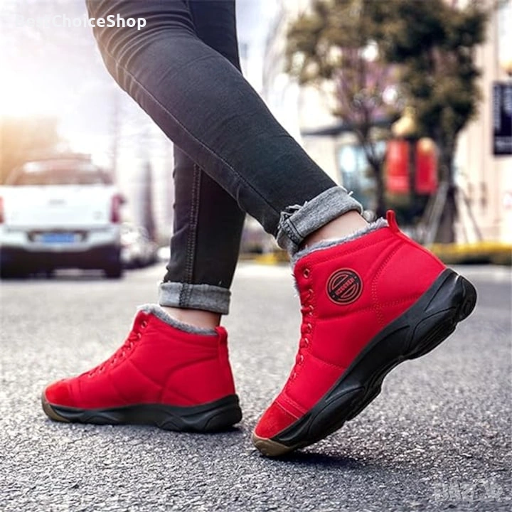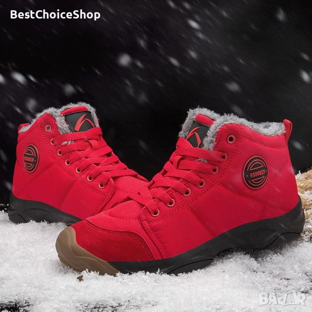 Продавам зимни туристически обувки AZOKEN – модел до глезена, в ярко червен цвят. Подходящи за студено време, сняг и ежедневна употреба през зимата.