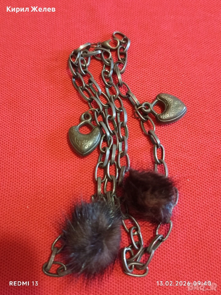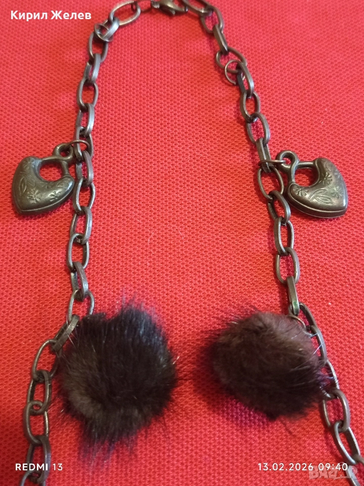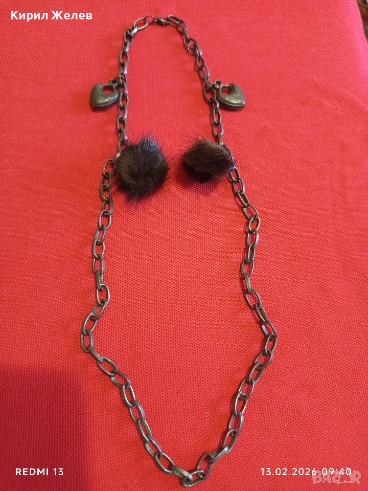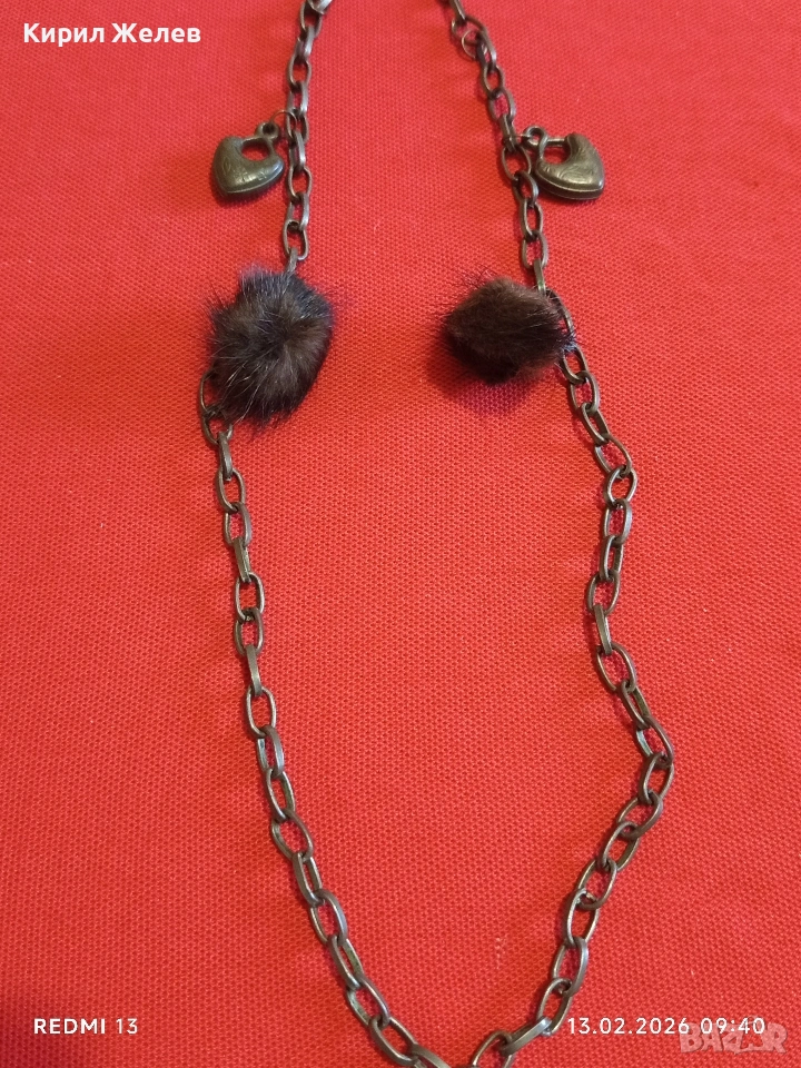 Дамско колие с висулки във формата на сърце и кожени помпони Арт бижу за влюбени 51889 → Обява 53462310