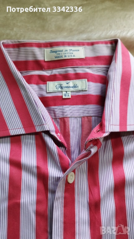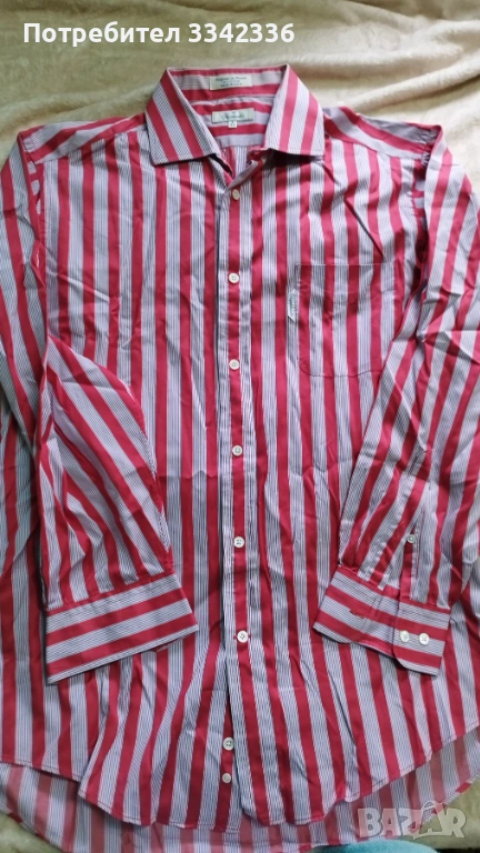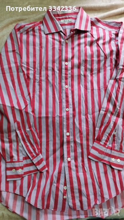 Риза с дълъг ръкав - Червено и бяло райе - 16 1/2 → Обява 53462357