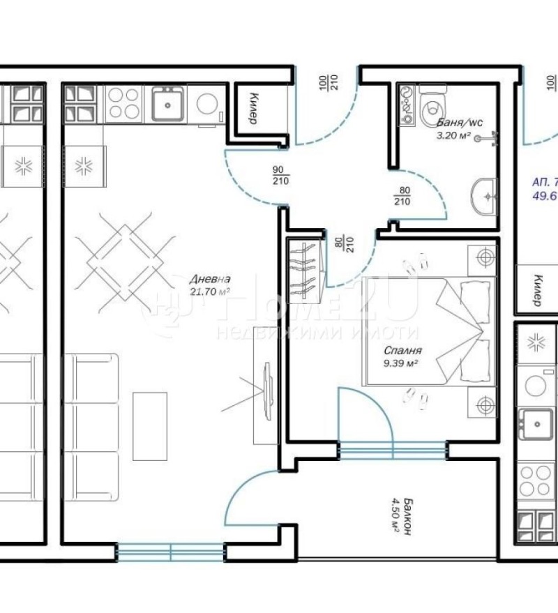 Жилището е с прекрасно разпределение и светли помещения, състои от просторна дневна с кухненска зона, уютна спалня, килер, баня с тоалетна, тераса!