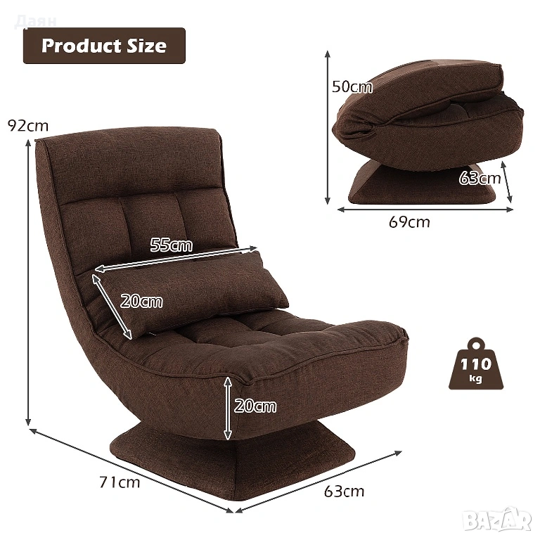 Подов фотьойл, въртящ се на 360 градуса, 4 нива на облегалката COSTWAY, снимка 1 - Дивани и мека мебел - 53462902 Подов фотьойл, въртящ се на 360 градуса, 4 нива на облегалката COSTWAY, снимка 2 - Дивани и мека мебел - 53462902 Подов фотьойл, въртящ се на 360 градуса, 4 нива на облегалката COSTWAY, снимка 3 - Дивани и мека мебел - 53462902 Подов фотьойл, въртящ се на 360 градуса, 4 нива на облегалката COSTWAY, снимка 4 - Дивани и мека мебел - 53462902 Подов фотьойл, въртящ се на 360 градуса, 4 нива на облегалката COSTWAY, снимка 5 - Дивани и мека мебел - 53462902 1/5