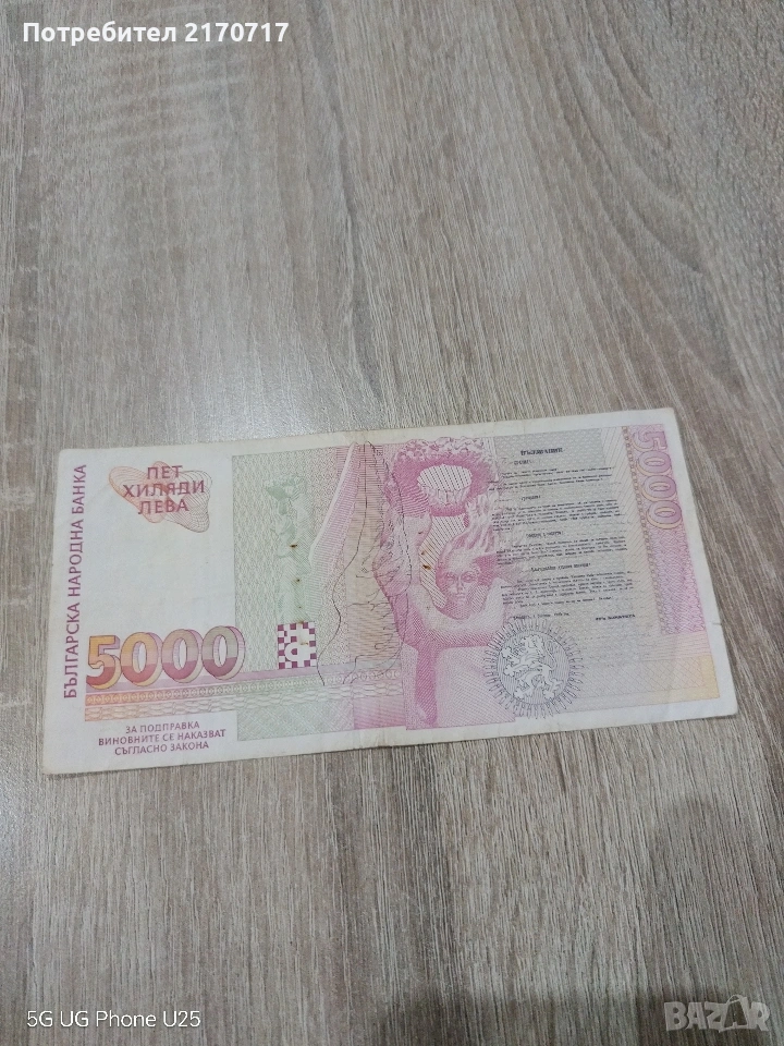Продавам , разменям банкнота 5000 лева 1997 година → Обява 53462941