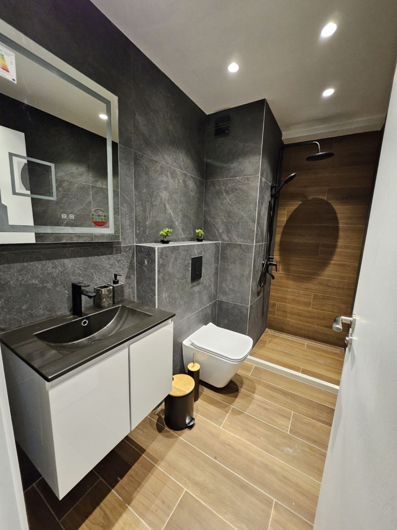 Разпределение: входно антре ,склад /мокро помещение/ хол с кухненски бокс, спалня, баня с тоалетна и тераса. Всеки апартамент е напълно обзаведен и разполага с всичко необходимо за едно домакинство. Комплекса разполага с отлични общи части, ограничен достъп и видеонаблюдение. Входната такса не е включена към наемната цена.