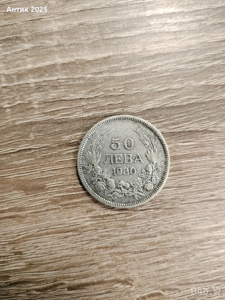 Продавам сребърна монета 50 лева от 1930 г., периодът на управление на цар Борис III, България.