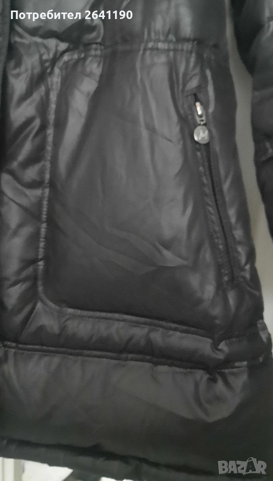 Пълнежът на якето е 100% пух. Като ново е и е много топло. Качествена материя отвън и вътре.