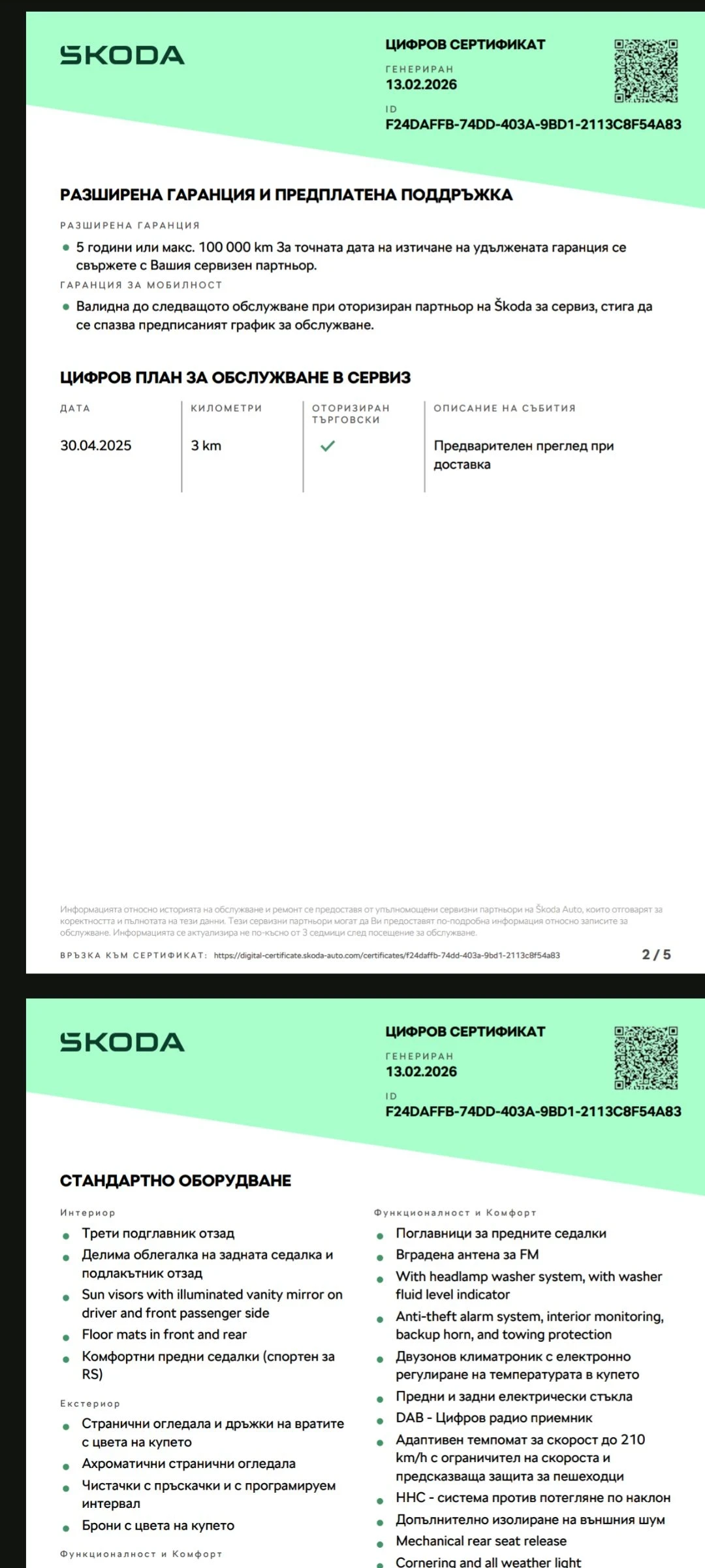 Практически нов автомобил на 12 000км, закупен май месец 2025-та година в брой от Еуратек. Активно каско, което никога не е ползвано. Мек хибрид, 150к. с. , автоматична скоростна кутия Специална версия Edition 130 с много екстри: - Салон в комбинация от кожа и алкантара с подгряване - Табло с алкантара - Спортен перфориран волан с подгряване - Матрични фарове - Ел. багажник, отваряне и затваряне с помахване под автомобила - Челно стъкло с подгряване - Допълнително обезшумяване на стъклата - Електрическо детско заключване на задни врати и прозорци - Безключово отключване, заключване и стартиране на колата - Хромирани лайстни около прозорците и много други. Черна перла, мие се само с Maxolen. Държи се в гараж. Два чифта нови гуми, два чифта оригинални стелки, двулицева стелка в багажника. Току-що обслужен.
