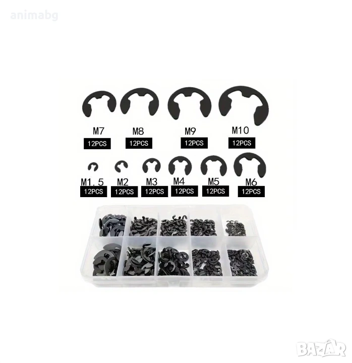 Този комплект съдържа 120 броя черни неръждаеми стоманени задържащи циркулци, които са идеални за закрепване на различни компоненти върху валове и оси. Циркулците, известни още като Snap Ring или E-Clip, се използват широко в машиностроенето, автомобилната индустрия и за домашни ремонти. Комплектът предлага разнообразие от размери (от M1.5 до M10), което го прави подходящ за различни приложения.