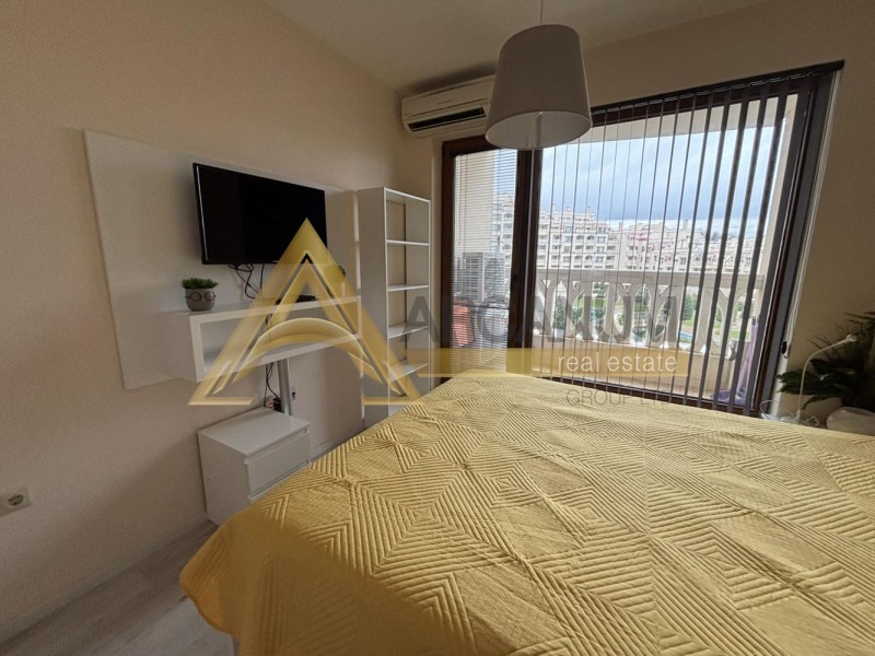 Двустаен апартамент в комплекс South Bay на първа линия до морето. Апартаментът е разположен на 2-ри етаж (от 3 жилищни), с тераса към басейна. Комплексът разполага с басейн, денонощна охрана, видеонаблюдение, огромен паркинг и контролиран достъп. Апартаментът е напълно обзаведен с всички необходими удобства разтегателен диван в хола, два климатика, пералня, два телевизора. Без домашни любимци.