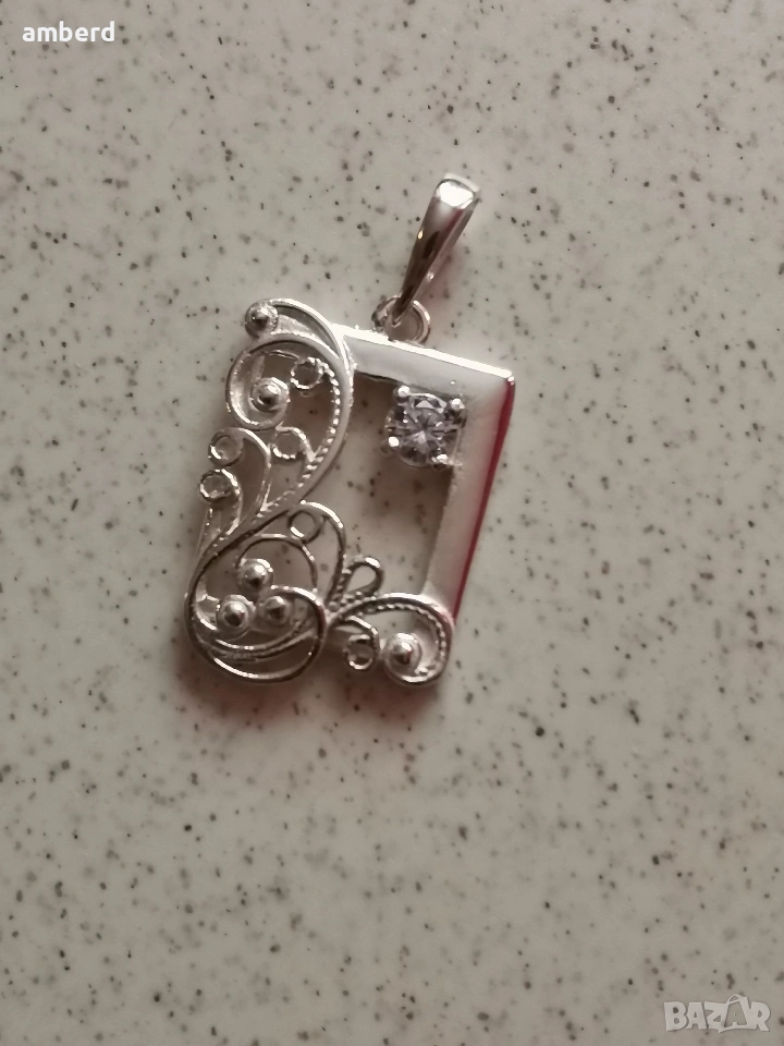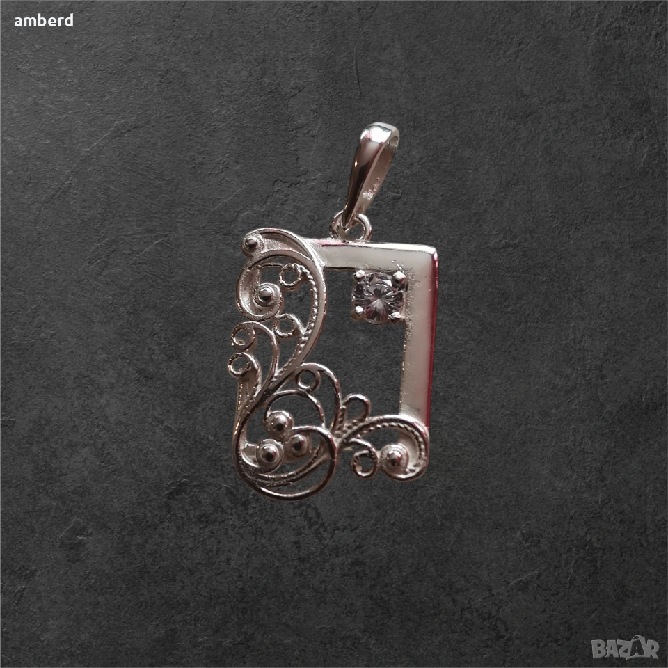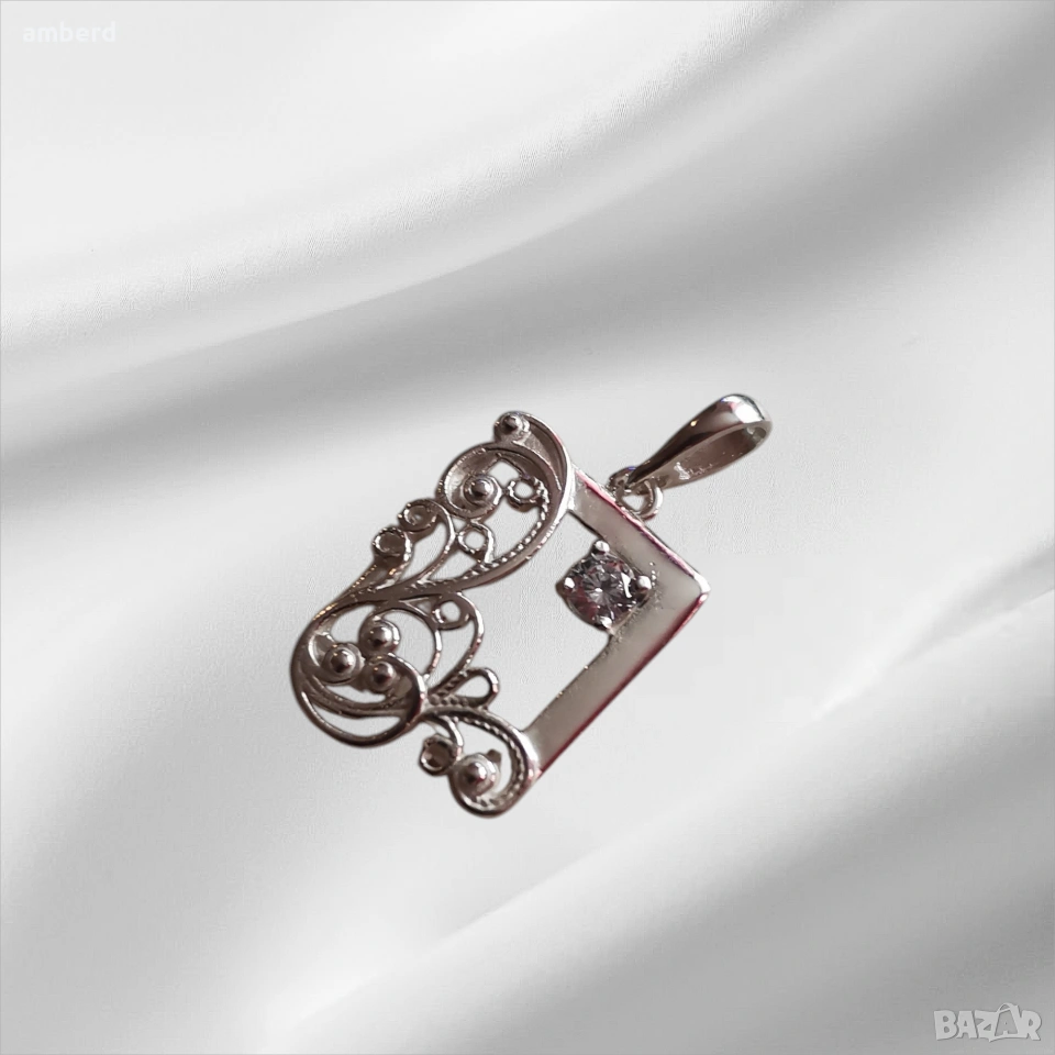 Уникален медальон, изработен от сребро проба 925 и 1 бял циркони. Размери - 20/15мм. без окачвача.