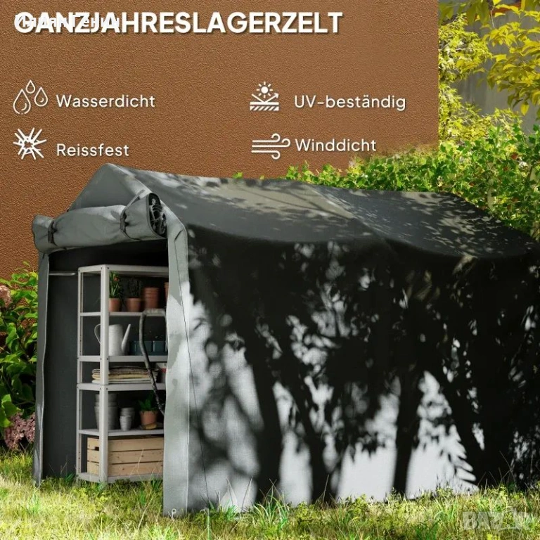 Просторно място за съхранение: Идеална за съхранение на велосипеди, мотоциклети, градински инструменти и оборудване за басейн, тази палатка за пасища поддържа вашата външна площ чиста и организирана.