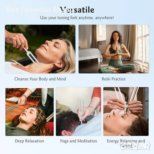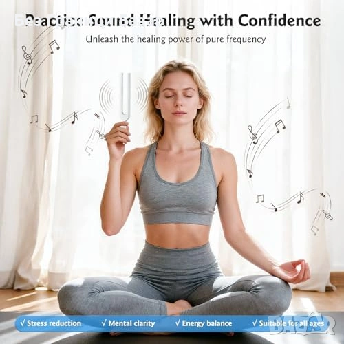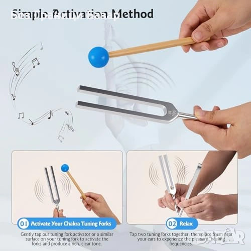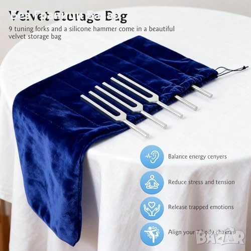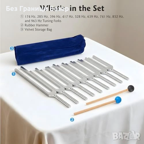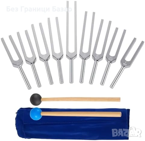 Нов Камертон сет за йога медитация рейки 9 броя 174–963Hz + калъф + чукче