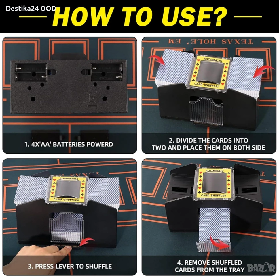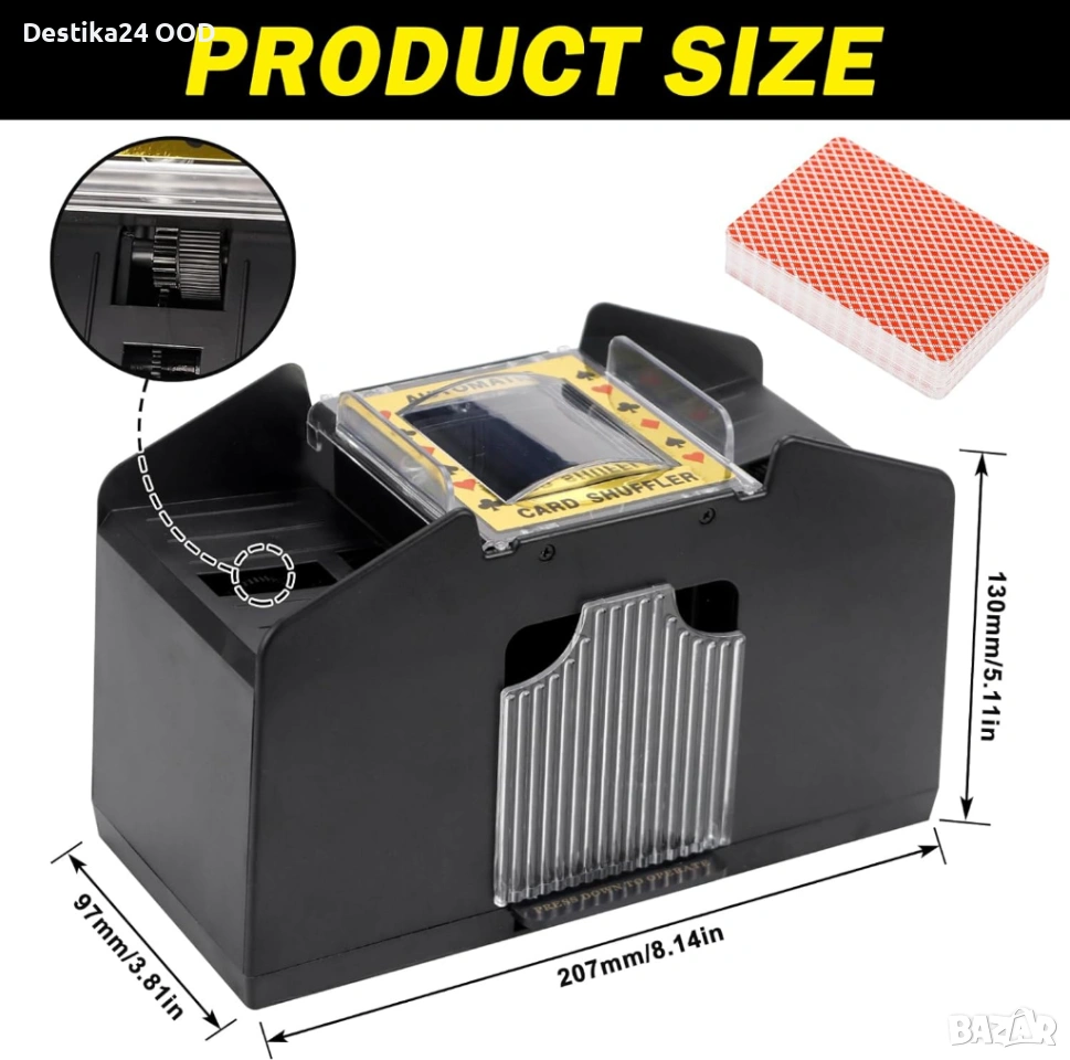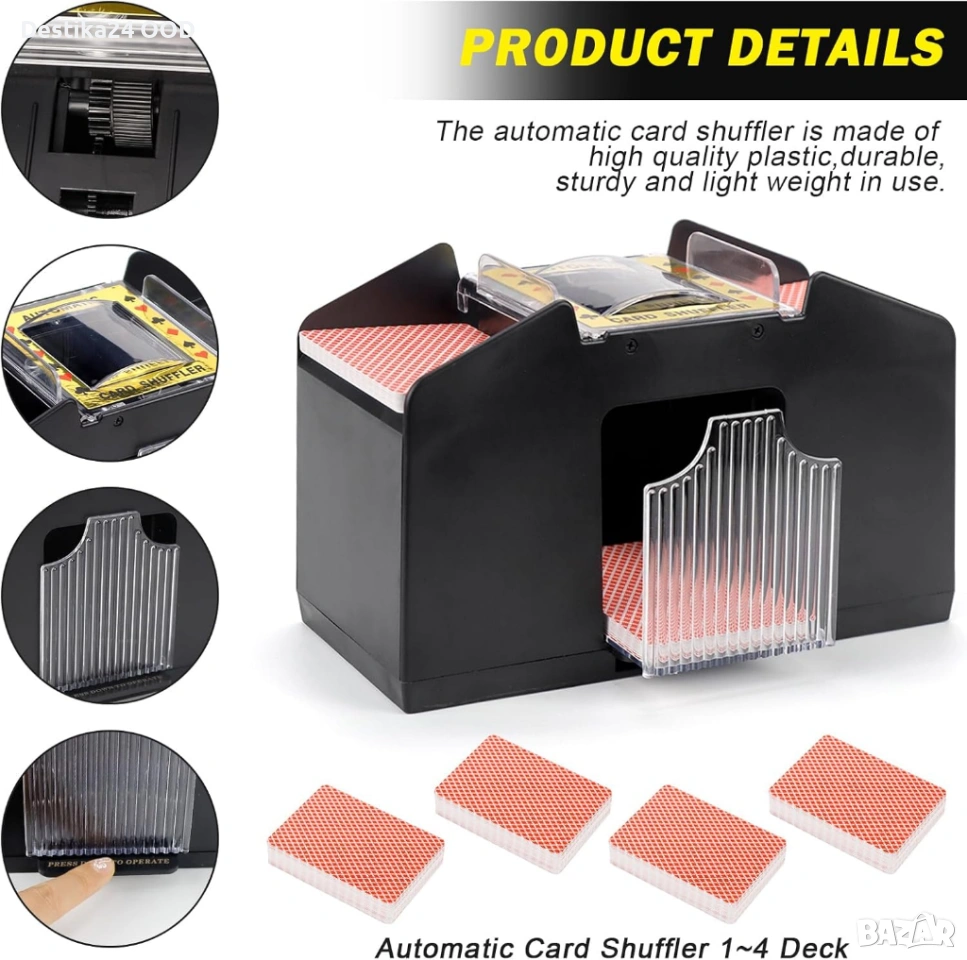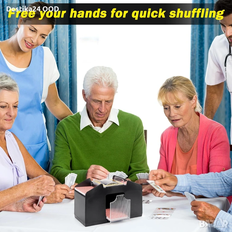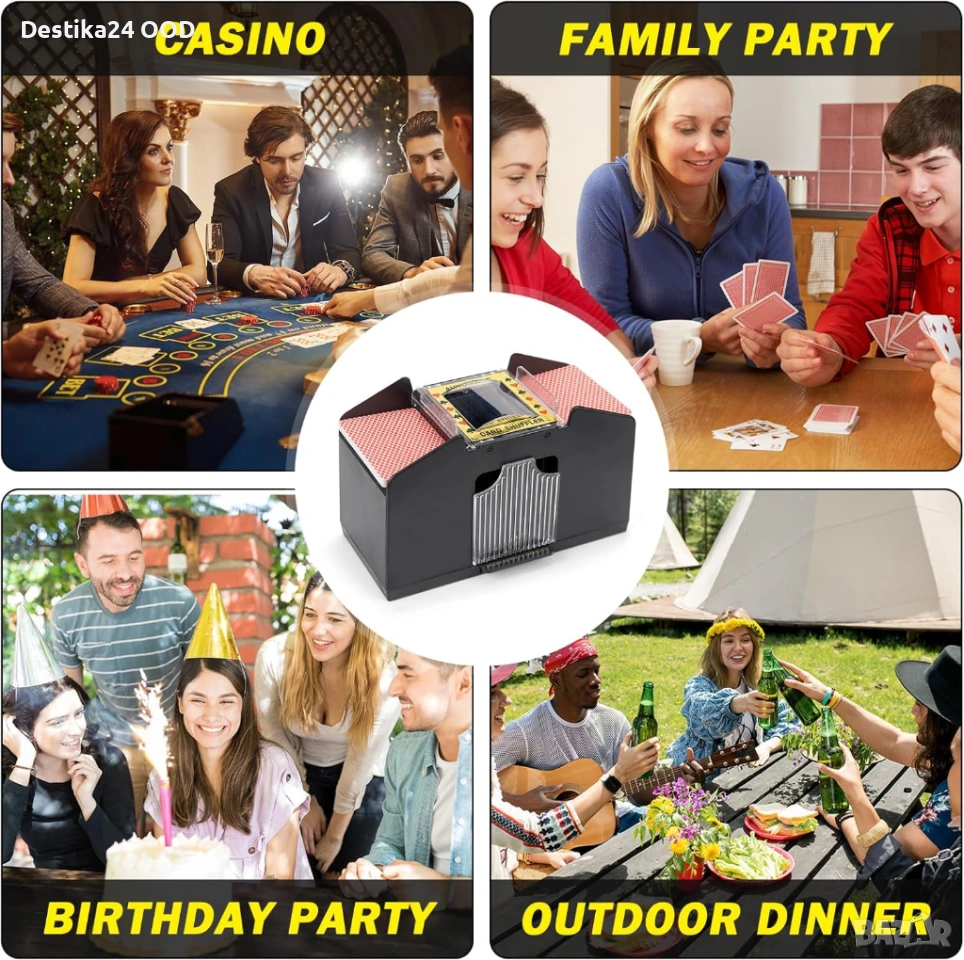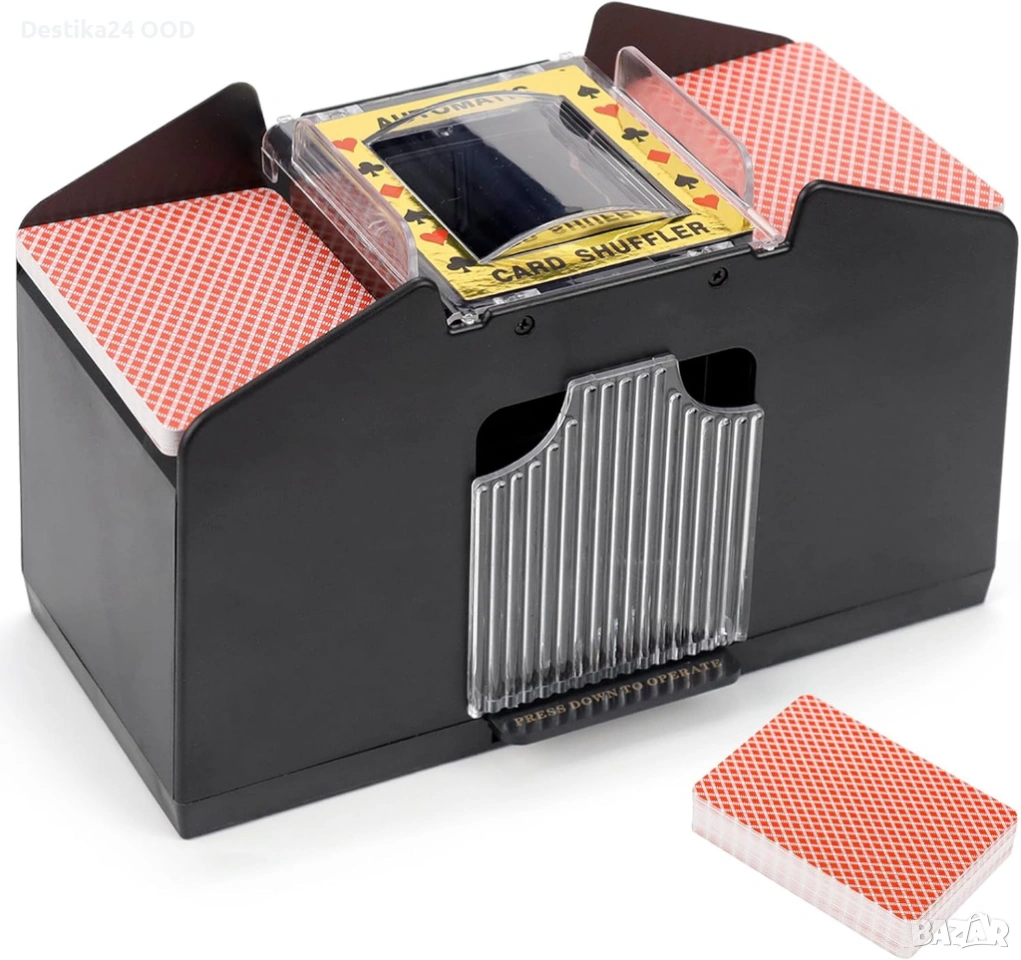 Продавам автоматична електрическа машина за разбъркване на карти. Подходяща за семейни игри, партита, събирания и всякакви игри с карти. Осигурява бързо и равномерно разбъркване без усилие.