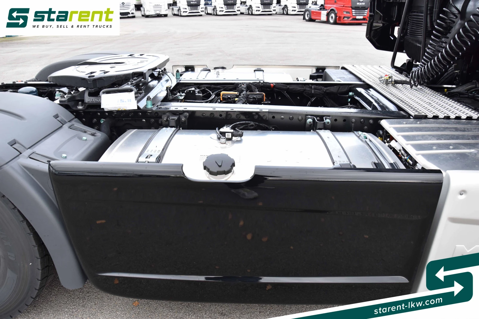 MAN TGX 18. 540 LL, ADR AT / EXII / EXIII / FL, Ретардер, Пълно въздушно окачване, Допълнителен климатик, LED светлини, Навигационна система, Пълен пакет спойлери, Алуминиеви джанти, Вентилирана седалка на водача С един поглед Първа регистрация: 12/2025 Цвят: Черен RAL9005 (Jet Black) Двигател: 540 к. с. /397 kW Пробег: 150 км Евро стандарт: Euro 6 Трансмисия: Автоматична Гуми: Предни: 385/55 R 22. 5 Задни: 315/70 R 22. 5 Забележка: Налично веднага Специално оборудване: ADR оборудване AT / EXII / EXIII / FL, Главен прекъсвач на акумулатора (външен и вътрешен), 540 к. с. , Ретардер, Пълно въздушно окачване, Допълнителен климатик, Навигационна система, Пълни кожени седалки, Отопляема/вентилирана седалка на водача, алуминиеви джанти (Alcoa Dura-Bright), 12, 3-инчов Professional инструментален панел, ACC, баланс на осите, EURO6, 2 въздушни клаксона, кабина GM, автоматична скоростна кутия, LED фарове, LED светлини и задни светлини, пълен пакет спойлери, сенник, странични калници, спойлер на покрива, огледала и облицовка на резервоара, боядисани в цвета на каросерията (пълно боядисване), функция PTO, въздушен пистолет, предупреждение за напускане на лентата, сензори за сблъсък, асистент за потегляне по наклон, сензор за дъжд, светлини за завиване, автоматични фарове, многофункционален кожен волан, седалки за водача и пътника с пневматично окачване, електрически преден сенник, масичка за багаж от страната на пътника, дистанционно управление, автоматичен климатик, камера за заден ход, електрически люк на покрива, електрическо накланяща се кабина, комфортно монтиране на кабината, цифрово дистанционно управление на товарното отделение, хладилник с фризерно отделение, допълнително отопление, 2 алуминиеви резервоара (490 + 370 = 860 литра), 2 легла, подготовка за Bluetooth, USB порт, AUX порт, предварително окабеляване на бордовата система. Стандартно оборудване: Бордови компютър, стелки за пода, задно пневматично окачване, блокаж на диференциала, тонирани стъкла, електрически регулируеми и отопляеми огледала, електрически стъкла, ABS, ASR, дискови спирачки, круиз контрол, теглич за пето колело, клин за колело, капак за колело, резервен ключ, сервизна книжка, комплект инструменти. _______________________________________ Вътрешен номер за справки: SZM26025 _______________________________________ офис телефон: +43 676 840 710 700/WhatsApp повече снимки и подробности моля вижте www. starent-lkw. com За да бъдете винаги информирани за нашите предложения, последвайте ни във Facebook, Instagram и се абонирайте за канала ни в YouTube.