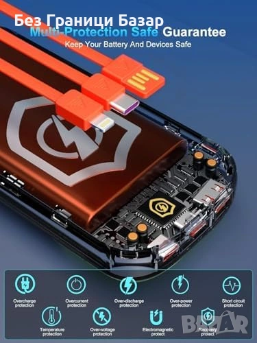 Нова Преносима батерия 48600mAh 22,5W USB-C + 3 порта кабели Power bank