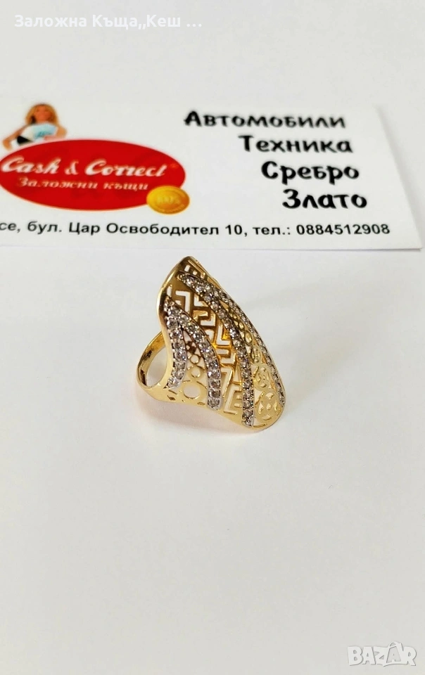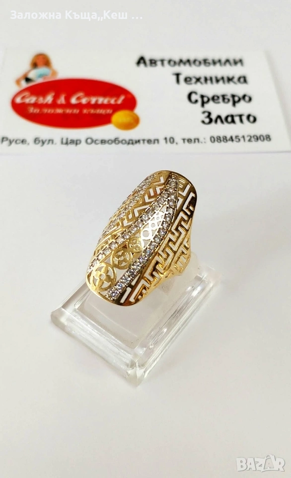 Златен дамски пръстен 14К.Тегло 3.56 гр.Размер 54.Цена 320 €. → Обява 53463998