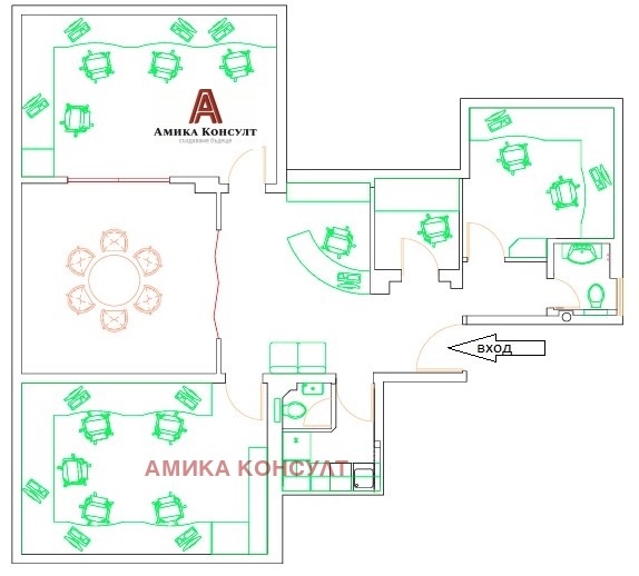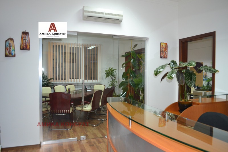 Бизнес-офис Московска се намира на изключително атрактивно и лесно достъпно място в центъра на София !!! Офисът се състои от 3 самостоятелни кабинета, с 11 работни места, голяма заседателна зала за 9 човека, мебелирана с италиански кожени столове, малка заседателна зала с 6 места, кухненски бокс със санитарен възел, баня с тоалетна и приемна с рецепция. Офисът е изцяло климатизиран, с външна топлоизолация, PVC дограма, централно парно отопление и топла вода. Всяко от помещенията е подсигурено с евакуационен план, а офисът е оборудван с пожарогасители. Разполага с интернет, Wi-Fi Access Point и 11 работни места, оборудвани с компютърна и комуникационна техника (19 LCD монитори с вградени колони, подвижни телефони Panasonic), мултифункционално мрежово устройство (цветен принтер, скенер и копир на формат А4 и А3) модел Canon iR3170Ci, програмируема автоматична телефонна централа Panasonic KX-TDA100 ( с възможност за включване до 8 външни линии + до 48 вътрешни линии), голям унищожител на документи, модел INTIMUS 600cc (Cross Cut технология). Към офиса се предлага самостоятелно сървърно помещение, което е климатизирано и се състои от 2 оборудвани работни места и мрежови принтер. Охраната на обекта се осъществява посредством сигнално охранителна техника. Огледи по всяко време !!! Агенцията разполага с ключ !!!