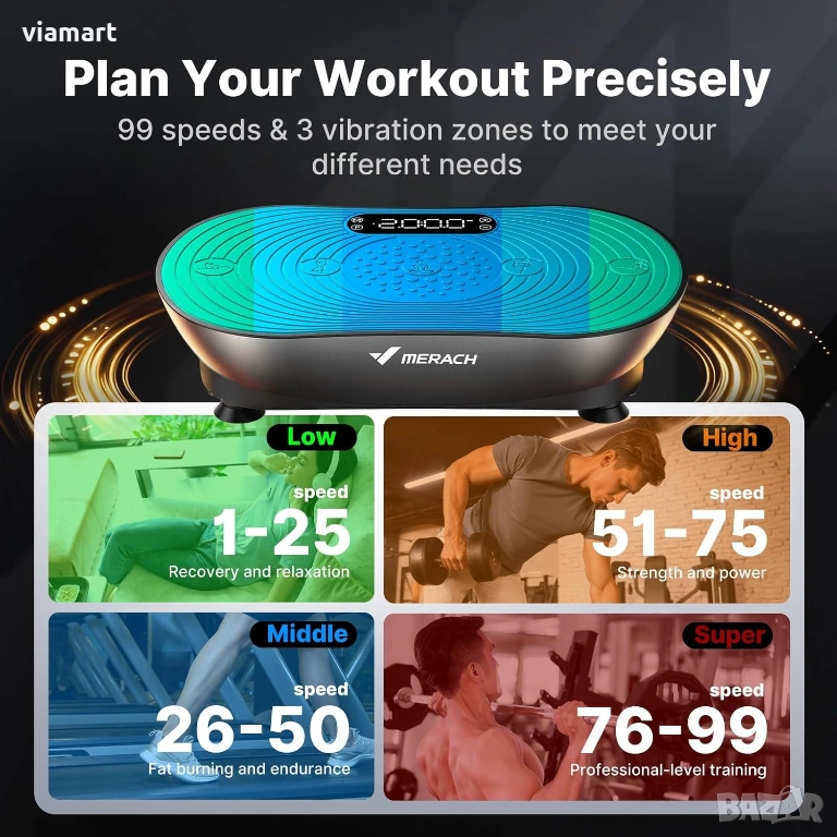 • 3 вибрационни зони – според позицията на тялото: ходене / джогинг / тичане