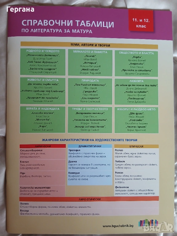 Справочни таблици по литература за матура 11 и 12 клас → Обява 53464356
