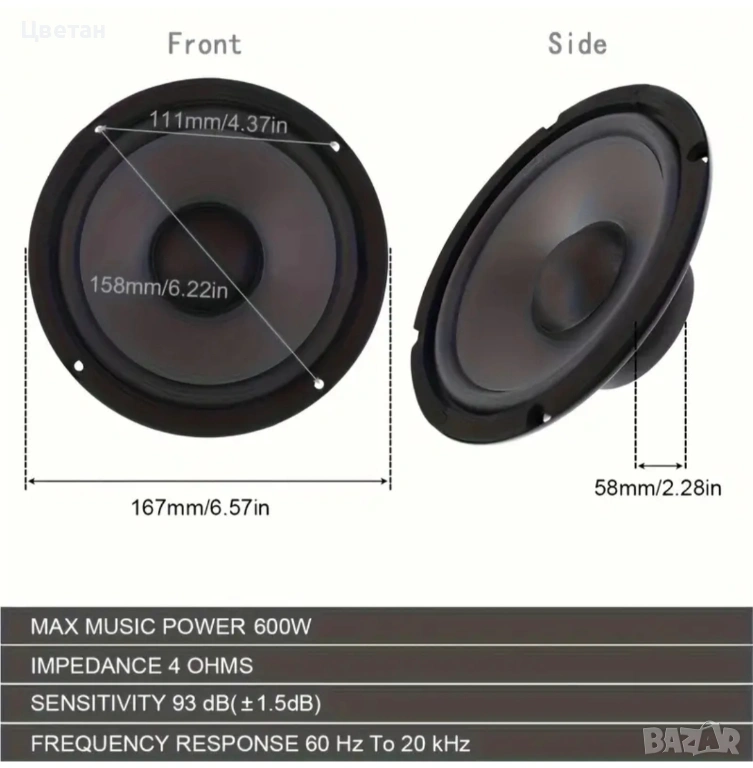 мидбас високоговорители YH-600 6.5 инча → Обява 53464428