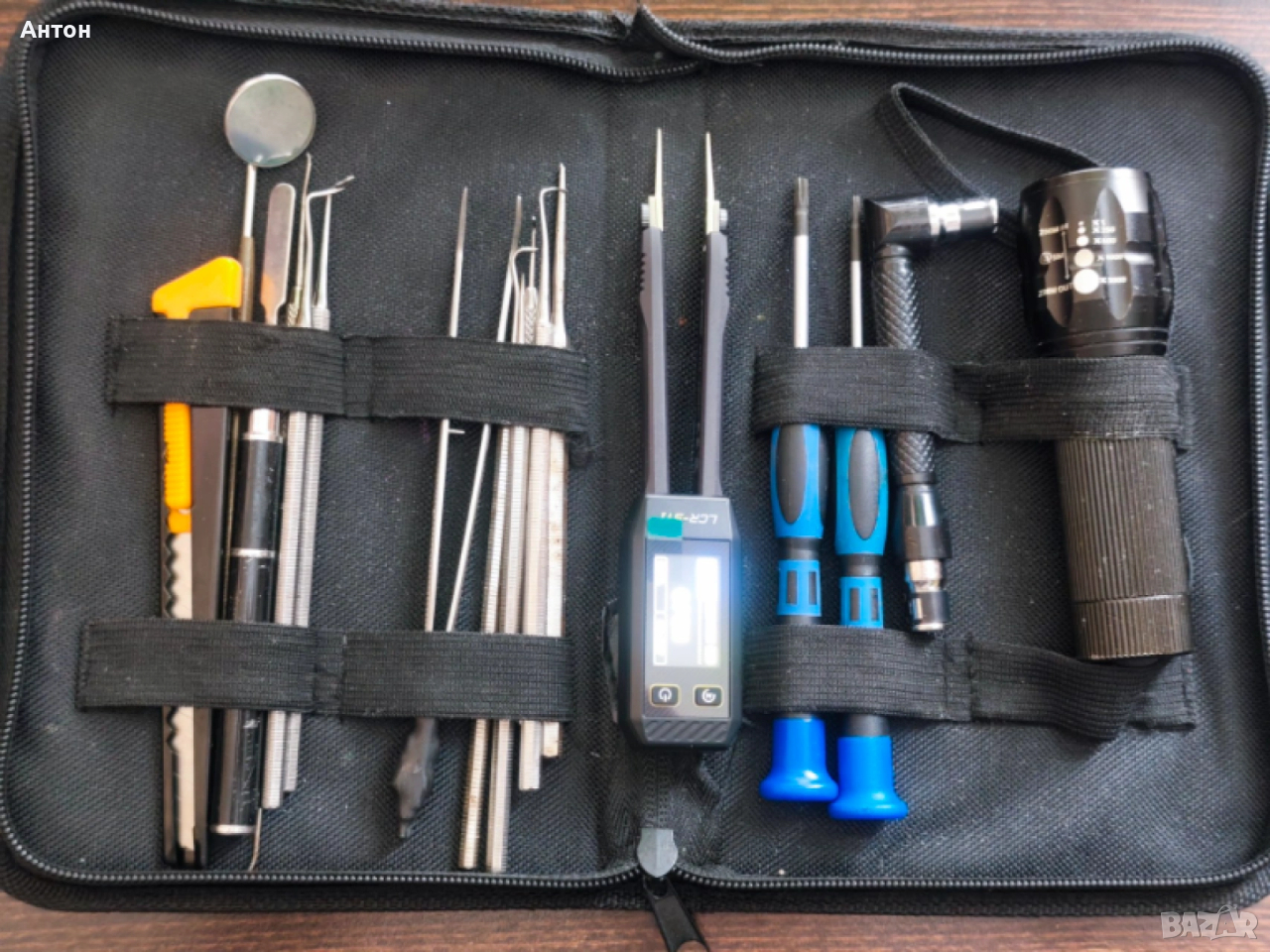 Инструменти за ремонт на електроника и печатни платки (част от тях са зъболекарски). Подходящи са и за моделиране, за почистване след 3Д принтиране, и много други цели. Част от тях са нови (отвертките, макетния нож, държача за битове), другите са ползвани, но в добро състояние. Имам няколко комплекта и тези са ми в повече.