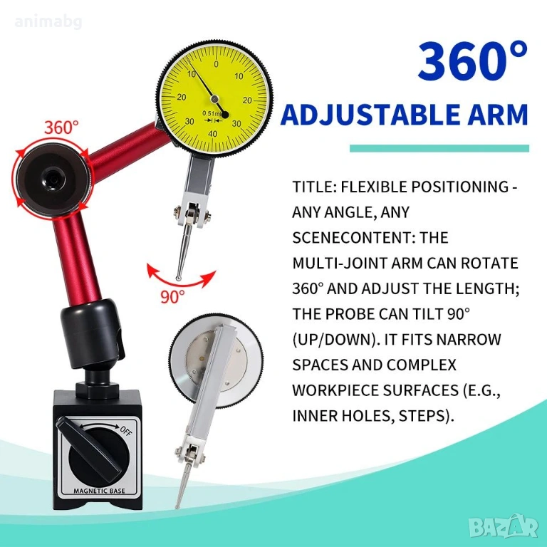 Прецизност и стабилност: Магнитната основа осигурява стабилност на инструмента, което е важно за точни измервания.