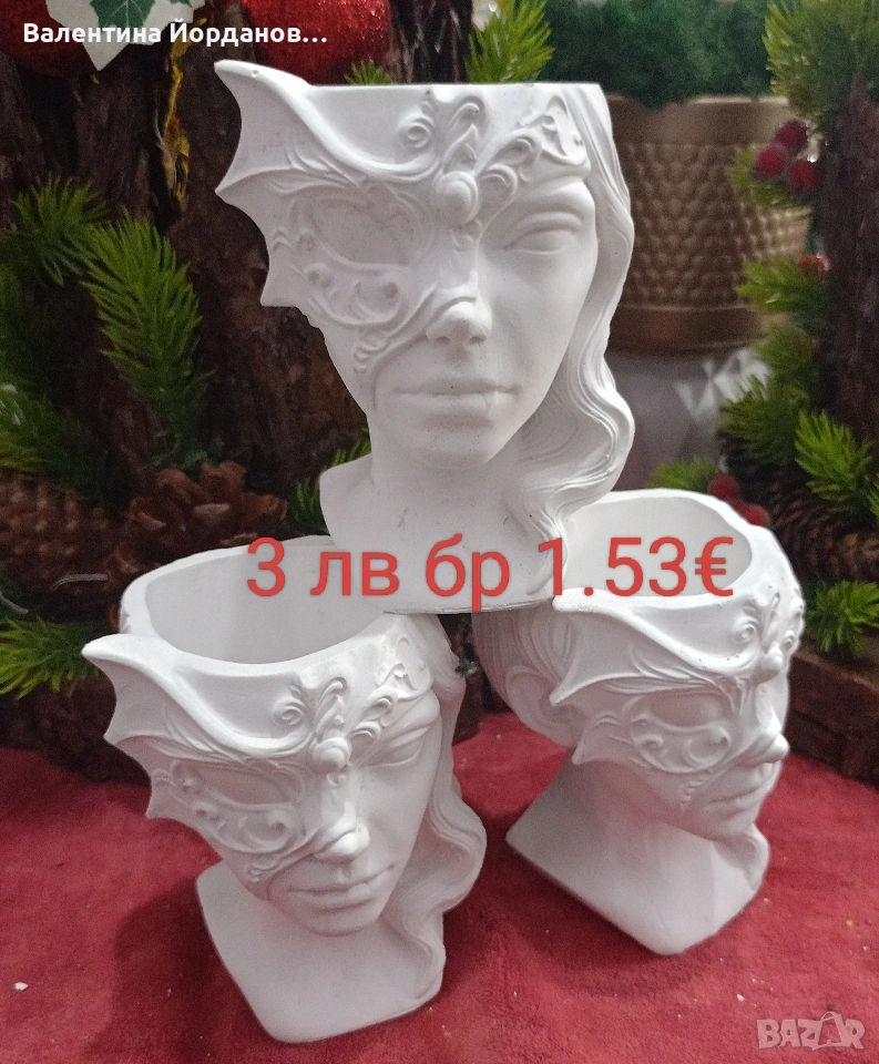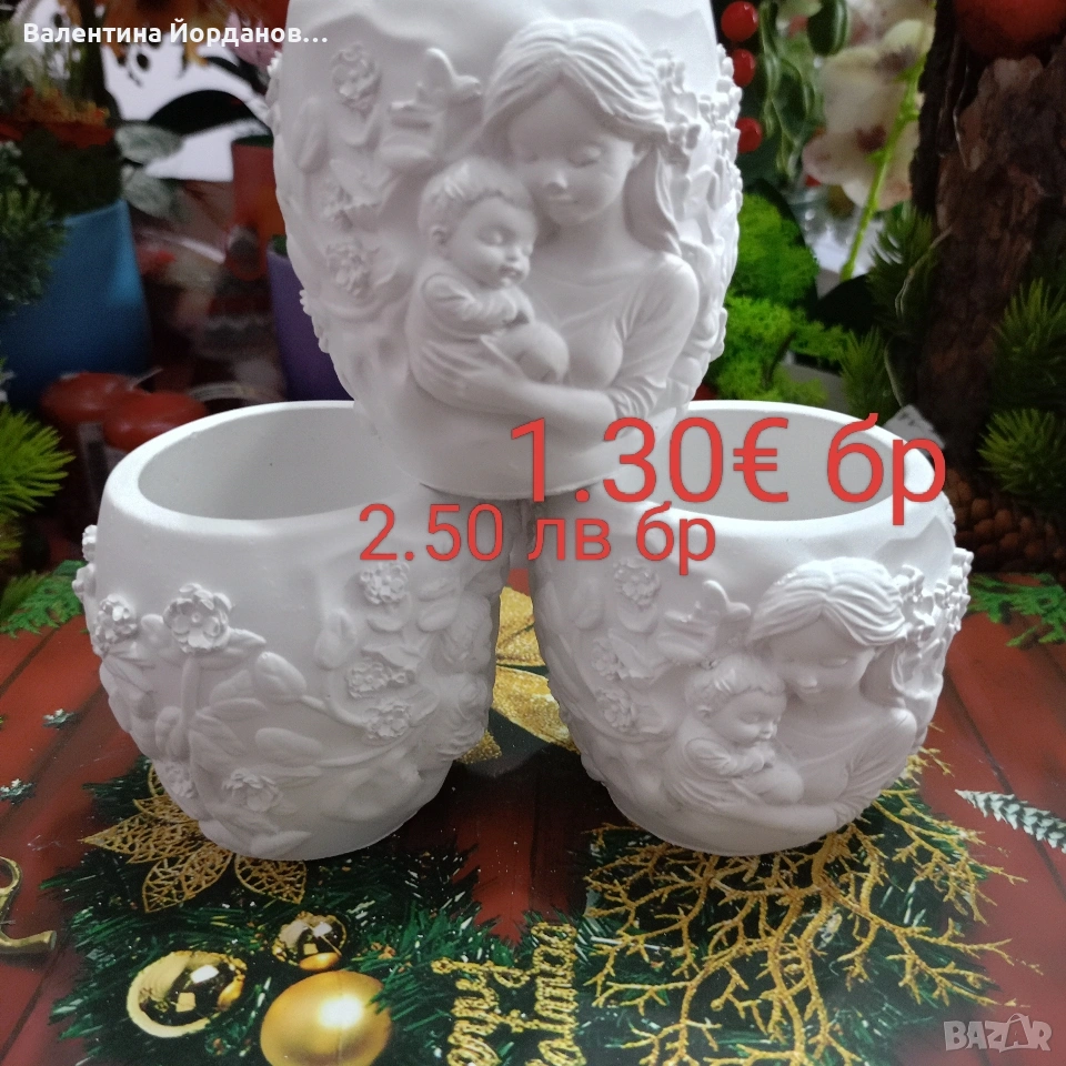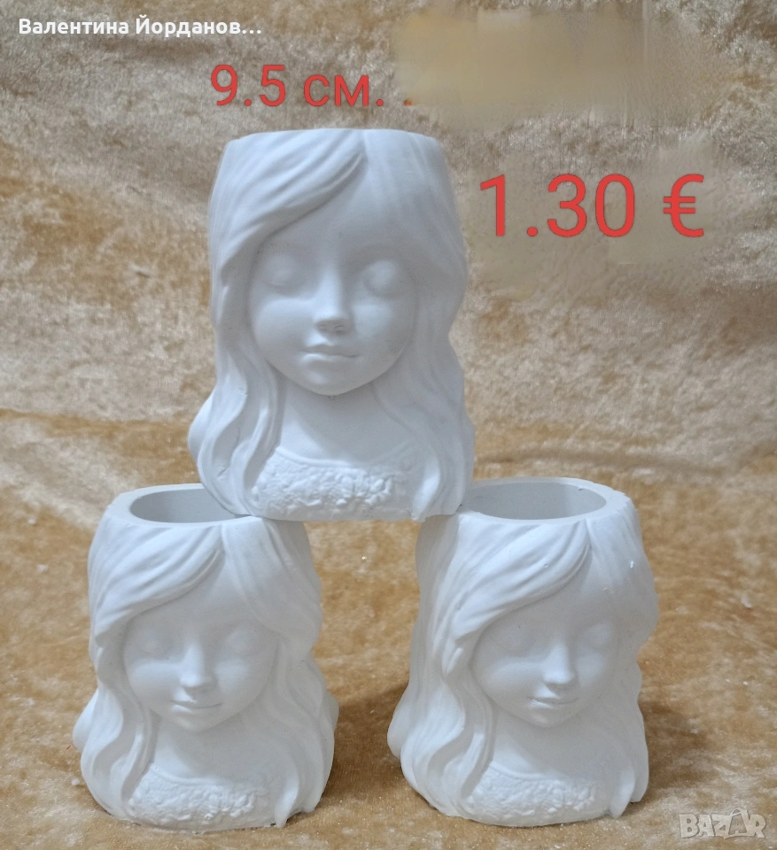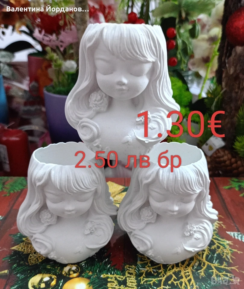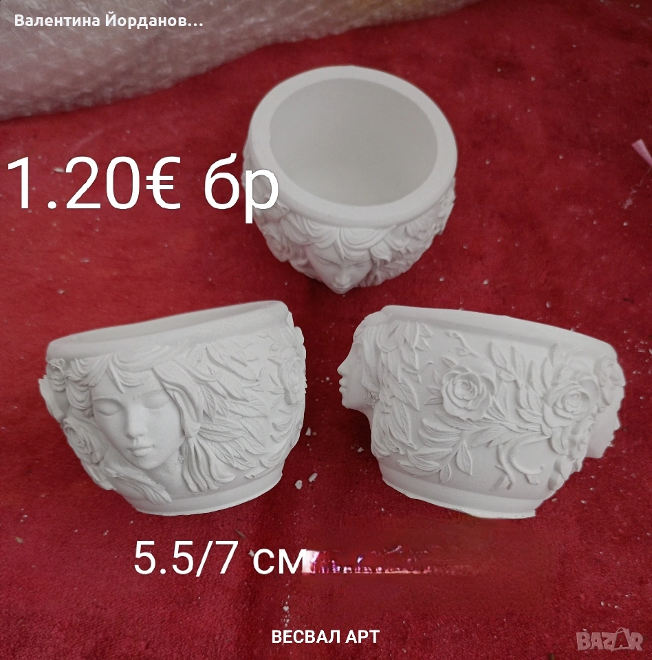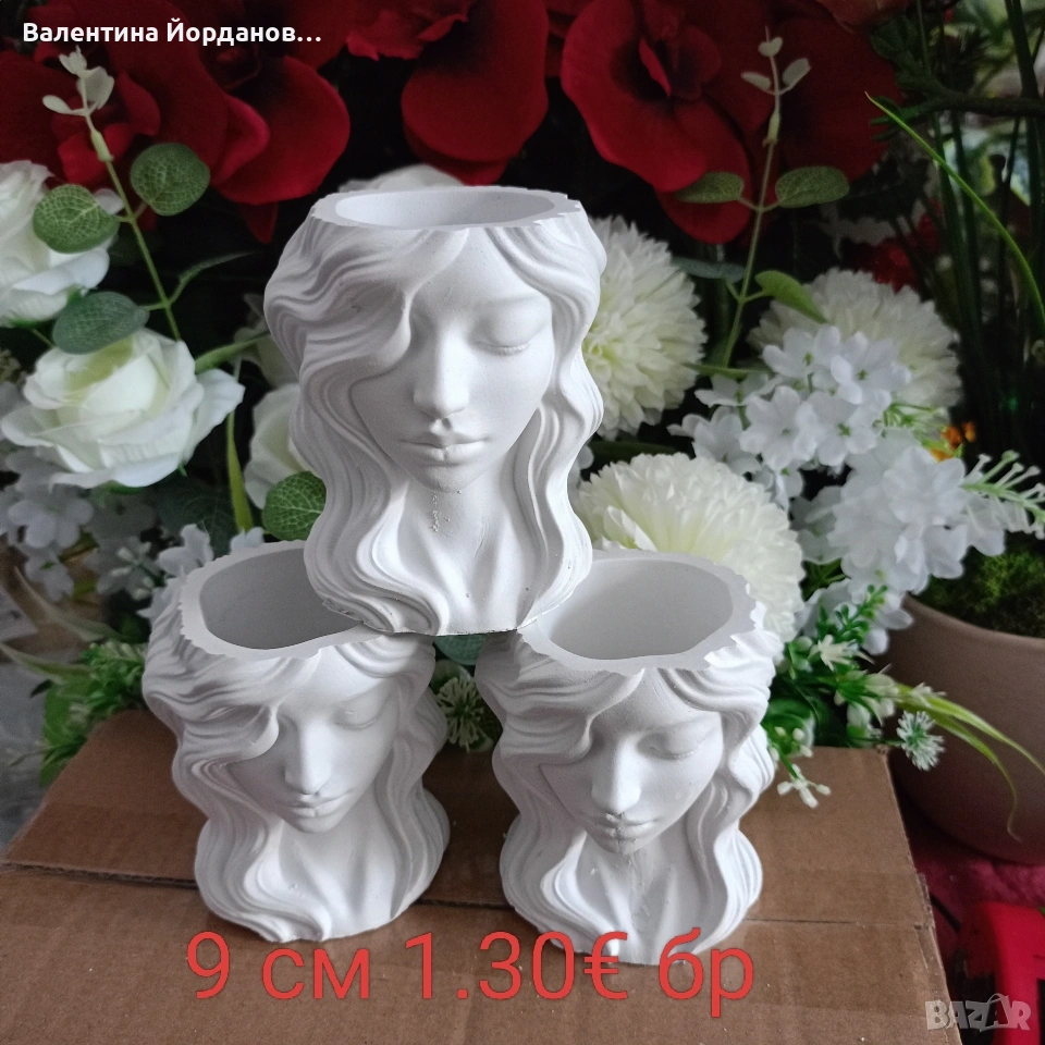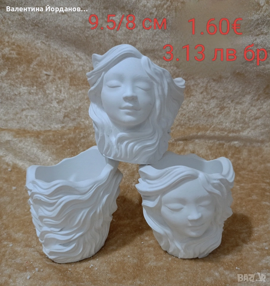 гипсови кашпи подходящи за декорация за 8 март. на всяка снимка има цена и размер. изпращам добре опаковани с Еконт или Спиди. издаване на фактура