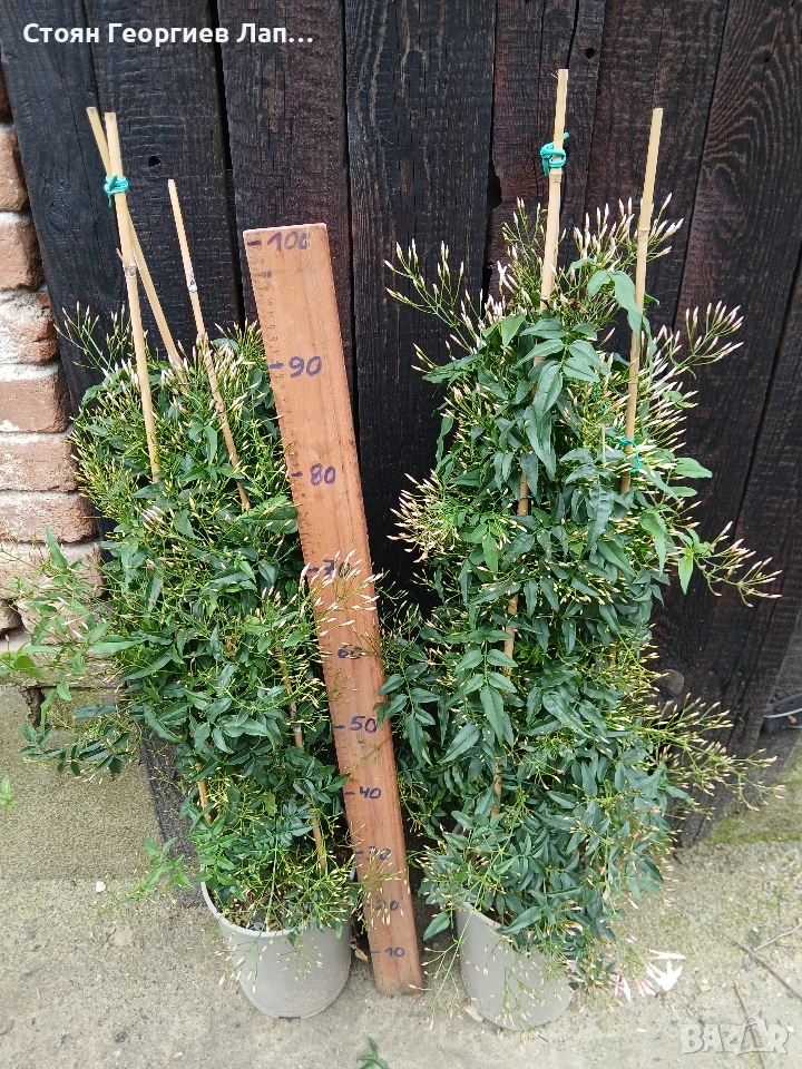 жасмин-Полиантум,този жасмин издържа до минус 15-17 градуса без проблем,цъфти от сега до късна есен,вечно зелен,докато са затворени пъпките са розови ,а цветът е бял и много ароматен, изключително красиво растение прекрасно както за саксийно така и за външно отглеждане. Имаме 3годишни с големина около 60см на цена 15 евро/29.34 лева за брой и 4 годишни с размер около 1м на цена 25 евро/48.90 лева за брой.Изпращам с еконт, за информация и поръчки тел 0889 611 430