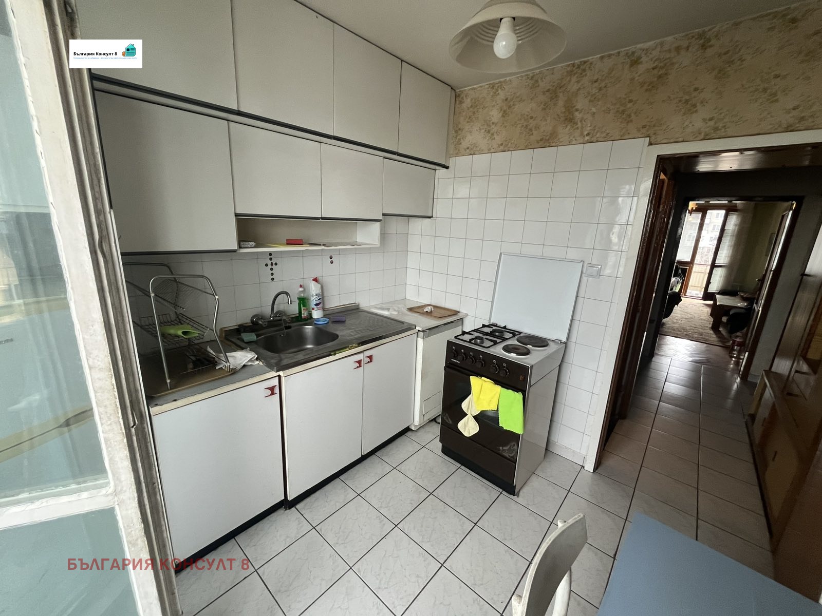 Разпределение: коридор, просторен хол с излаз на тераса, отделна кухня с тераса, две самостоятелни спални (едната с тераса), баня и отделна тоалетна. Жилището е с практично вътрешно разпределение, без преходни помещения, което го прави удобно както за семейно ползване, така и за инвестиция.