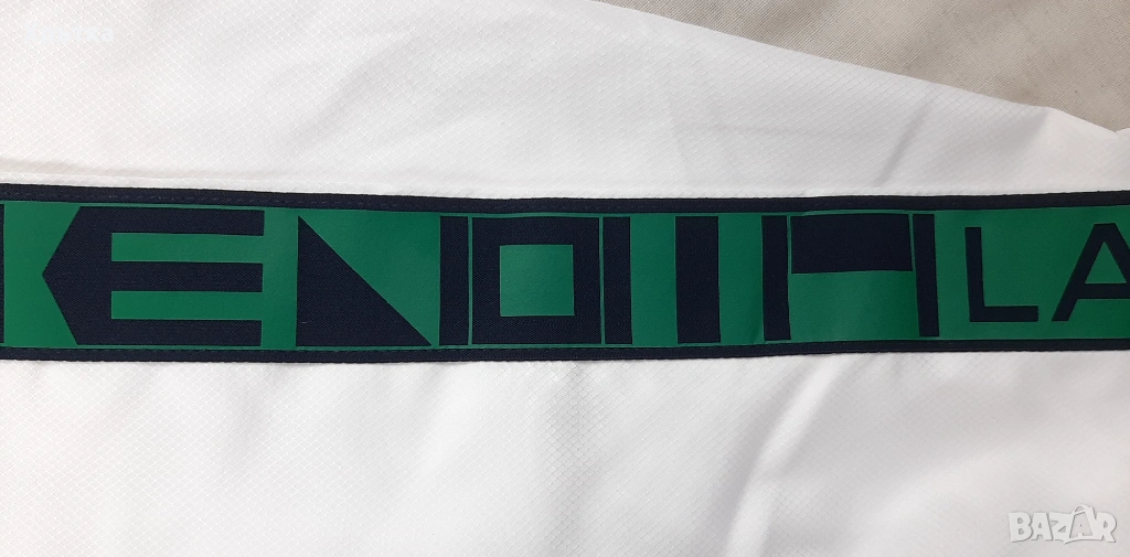 Контрастна зелена лента на ръкавите с надпис и лого на марката.