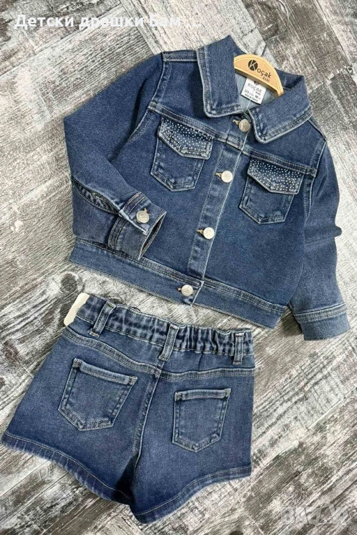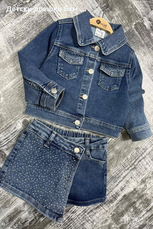 Стилен дънков комплект с камъчета