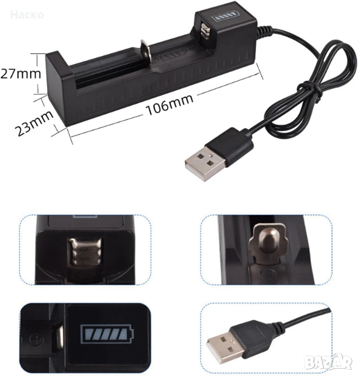 · Съвместимо с 18650, 21700, 14500 и други 3.7V батерии