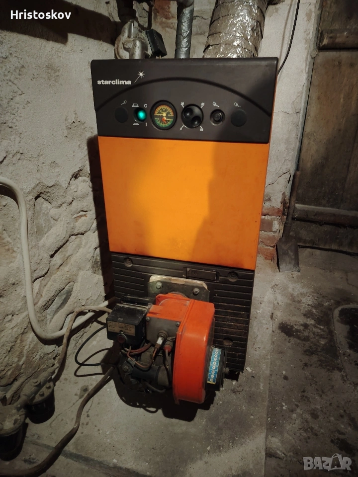 Продавам чугунен водогреен котел Starclima 25kw, италианско производство, горелката и останалото оборудване към него. Водна помпа, филтри, разшерителен съд и резервоар за гориво 300 литра. Котела може да работи и на газ. Всичко е в пълна изправност и в момента работи до изчерпване на горивото.