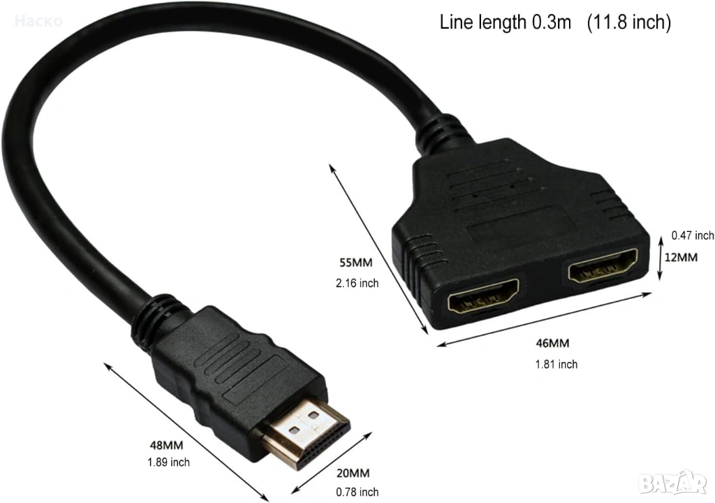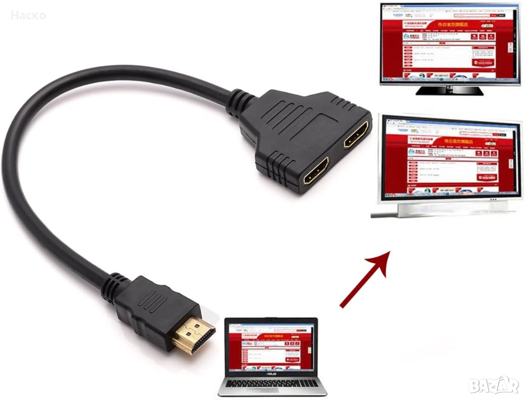 Двоен изход: Този кабел разделя един сигнал на два изхода,