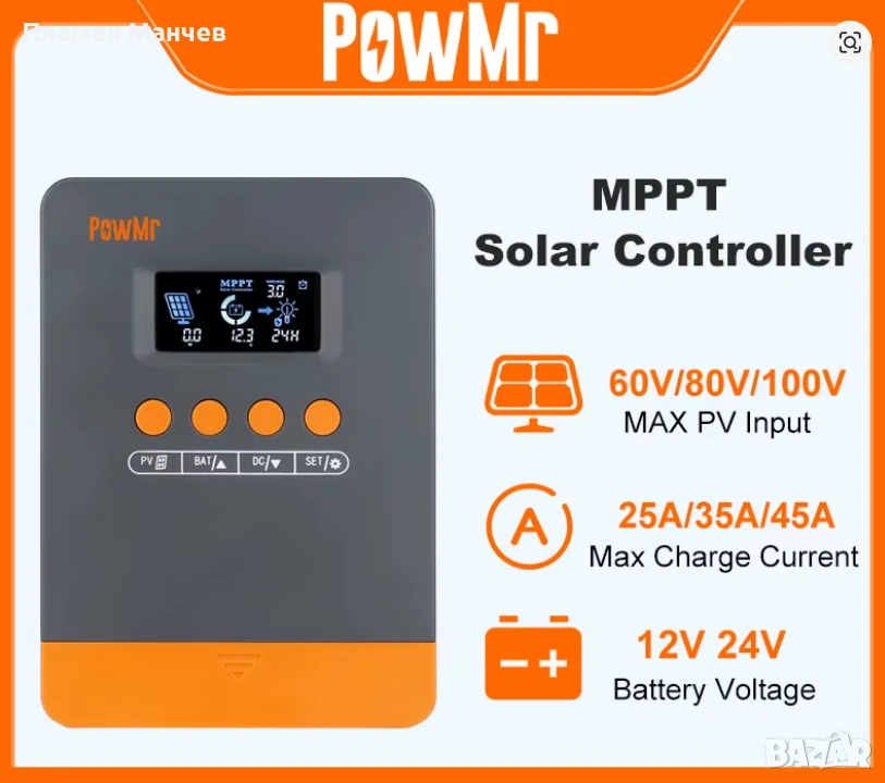 Контролер за соларни панели PowMr MPPT 45A - PRO, снимка 1 - Друга електроника - 53465766 Контролер за соларни панели PowMr MPPT 45A - PRO, снимка 2 - Друга електроника - 53465766 Контролер за соларни панели PowMr MPPT 45A - PRO, снимка 3 - Друга електроника - 53465766 Контролер за соларни панели PowMr MPPT 45A - PRO, снимка 4 - Друга електроника - 53465766 Контролер за соларни панели PowMr MPPT 45A - PRO, снимка 5 - Друга електроника - 53465766 1/5