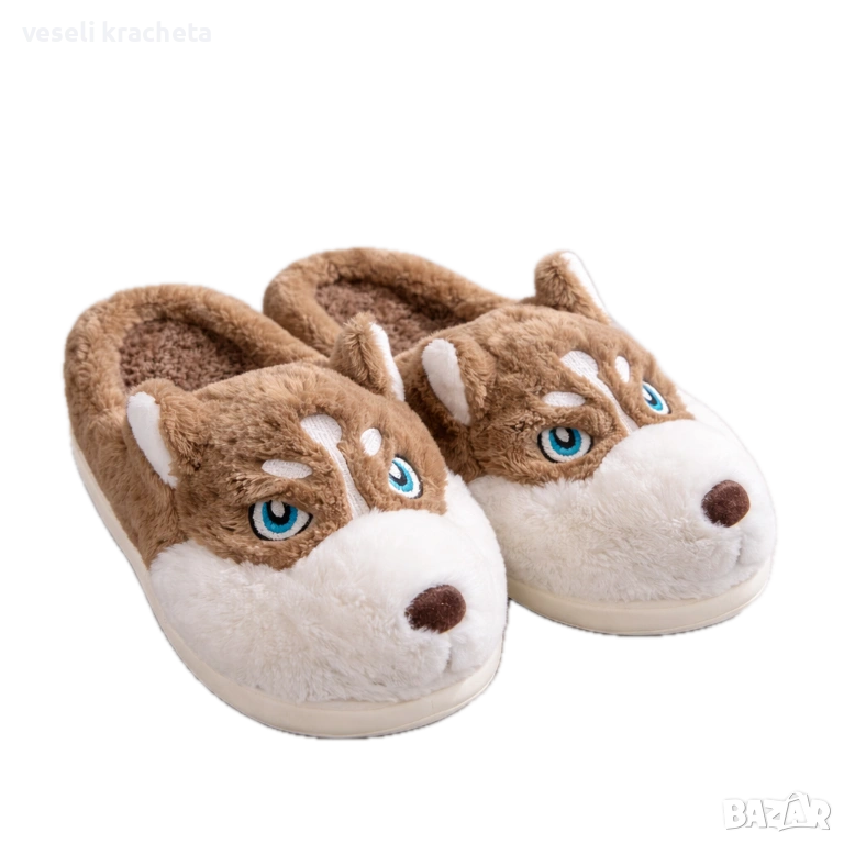 Домашни 3D чехли хъски Весели Крачета плюшени чехли куче домашни пантофи
