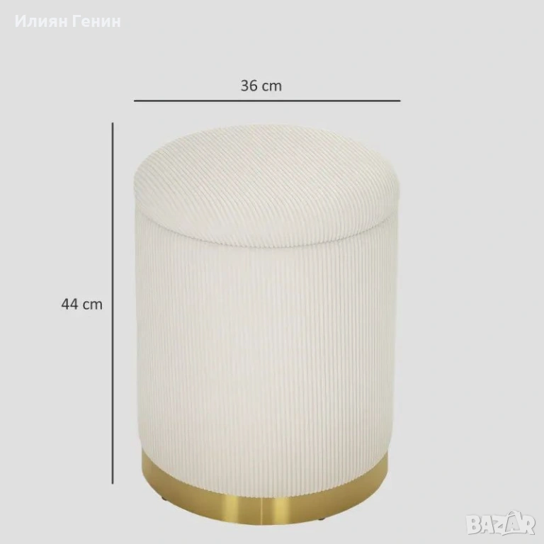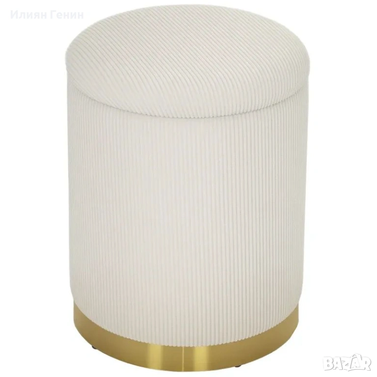 HOMCOM Табуретка за съхранение, Сгъваема табуретка с капак, Стоманена основа, Кръгла табуретка за крака 36 x 36 x 44 см Кремаво бяла - 60.00 €.