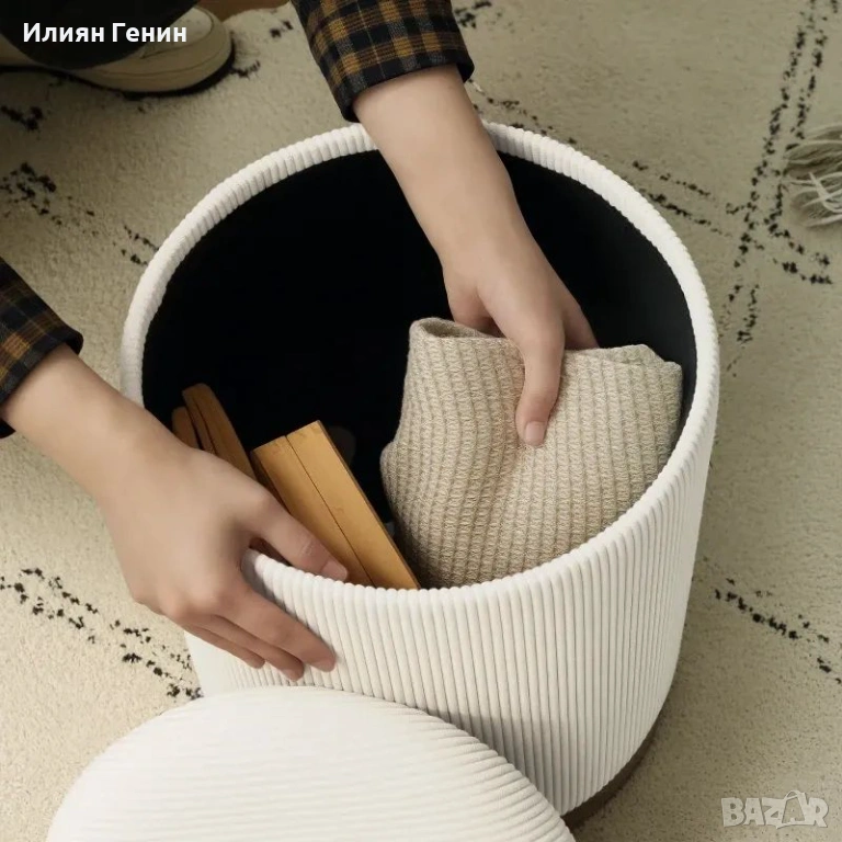 Просторно решение за съхранение: Този табурет предлага 30,6 литра място за съхранение, идеално за съхранение на книги, уютни одеяла и ежедневни вещи. Това помага да поддържате дневната си стилна и подредена.