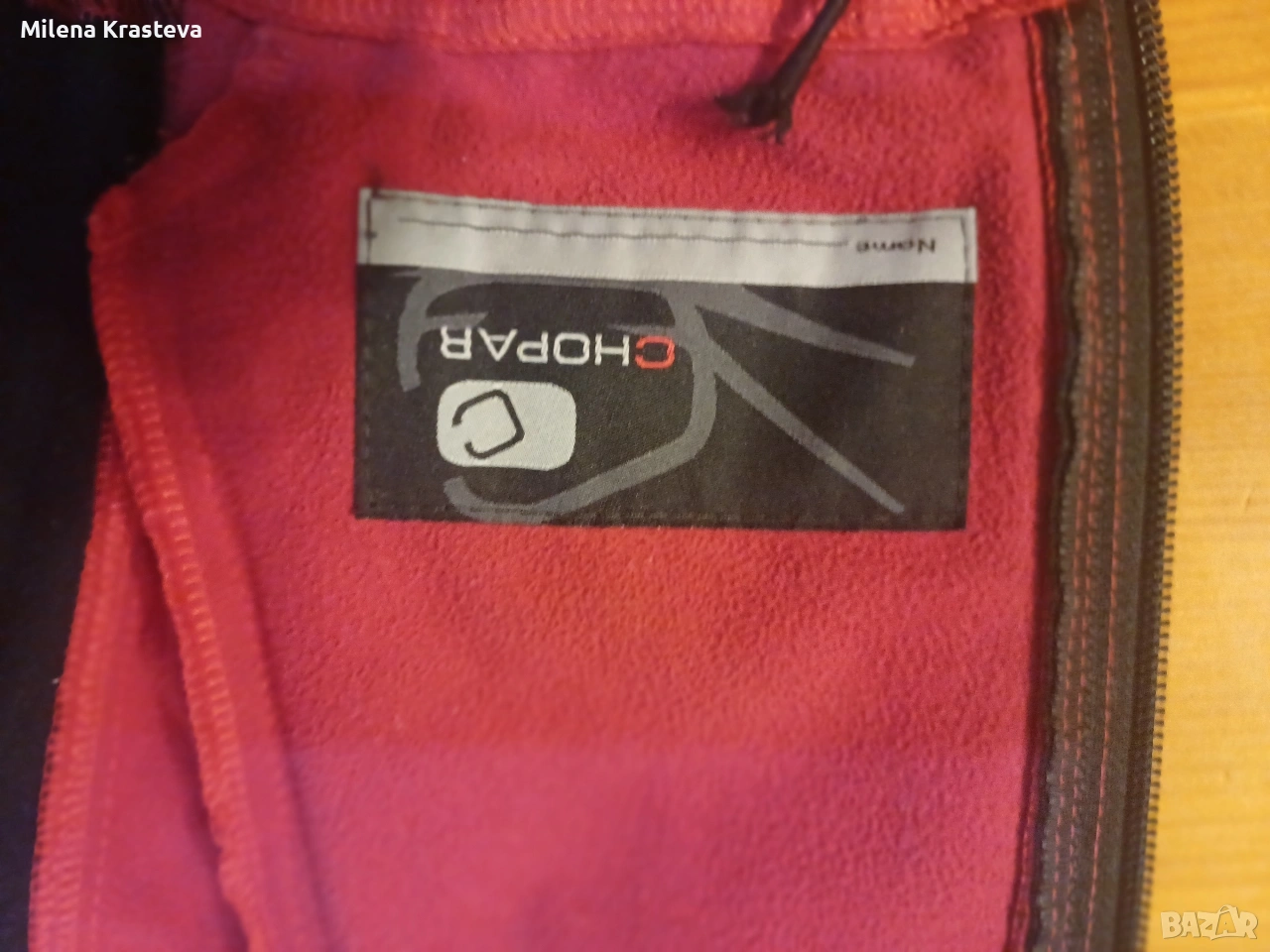 Спортно яке, отдоло е с ластик.Два предни ципа. Протектор под ципа за да няма проникване на вода