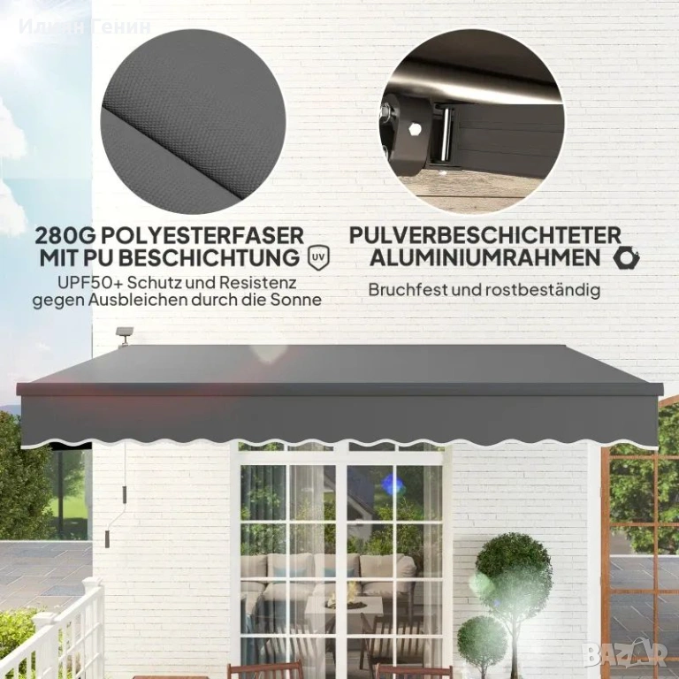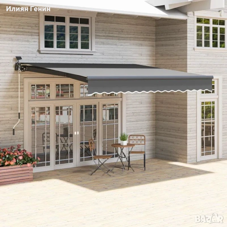 Тента Outsunny с ръчна манивела, слънчева светлина, сгъваем сенник, слънцезащита UV 50+, ширина 400 см, сив - 350.00 €.
