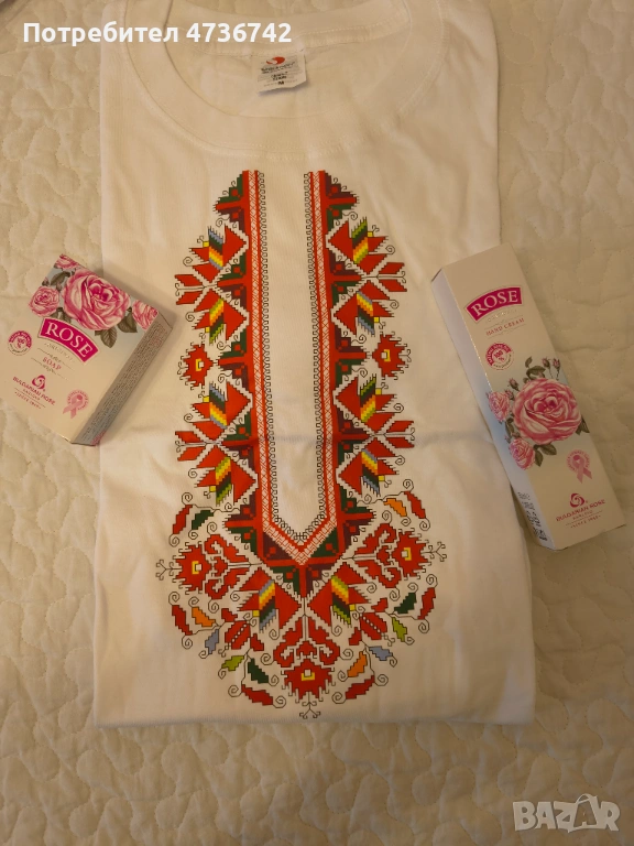 Дамска тениска/бродерия/ къс ръкав,крем за ръце и сапун /Българска роза / размери S ,М L, XL